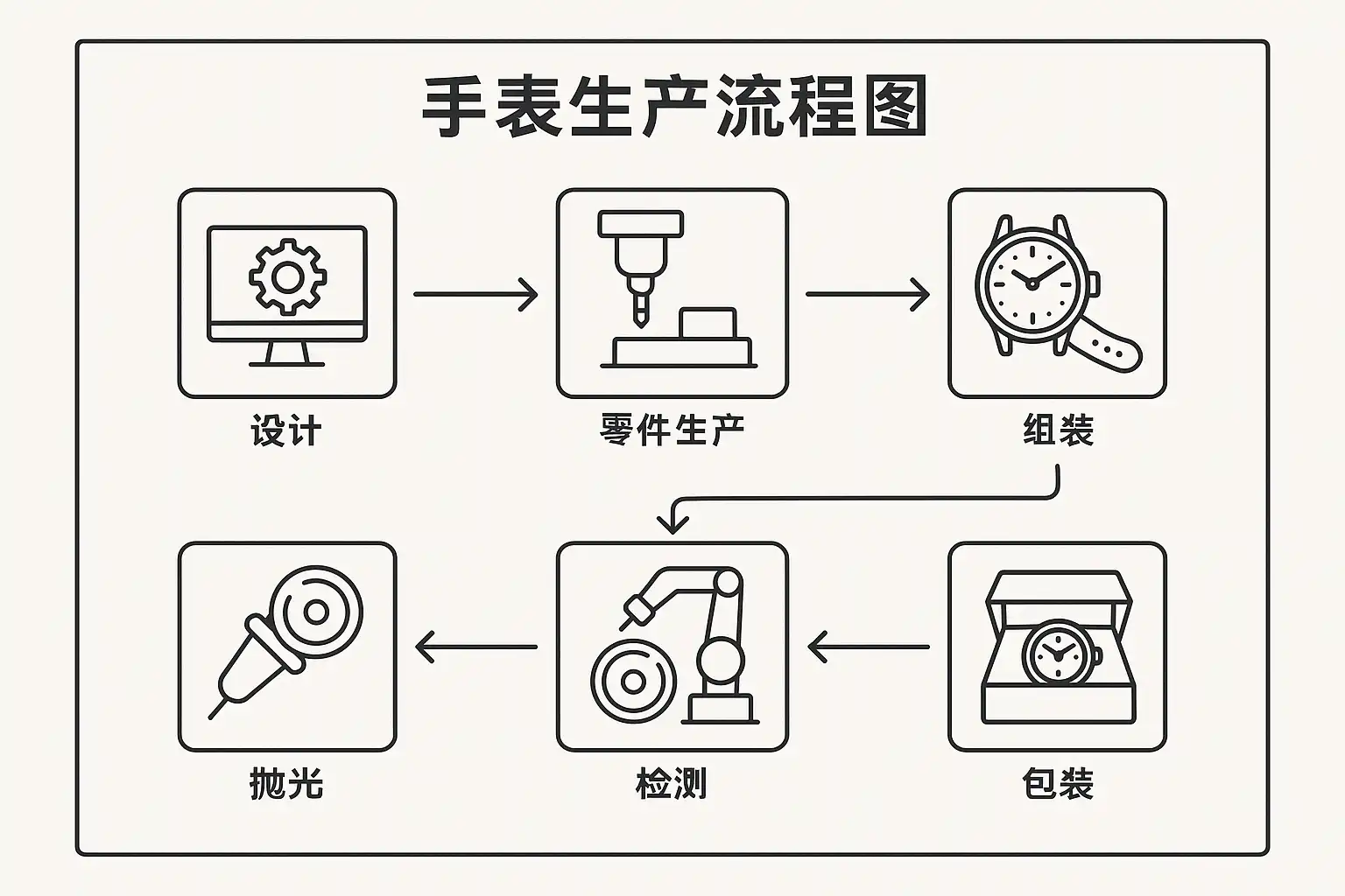 手表生产流程一般包括以下标准环节: