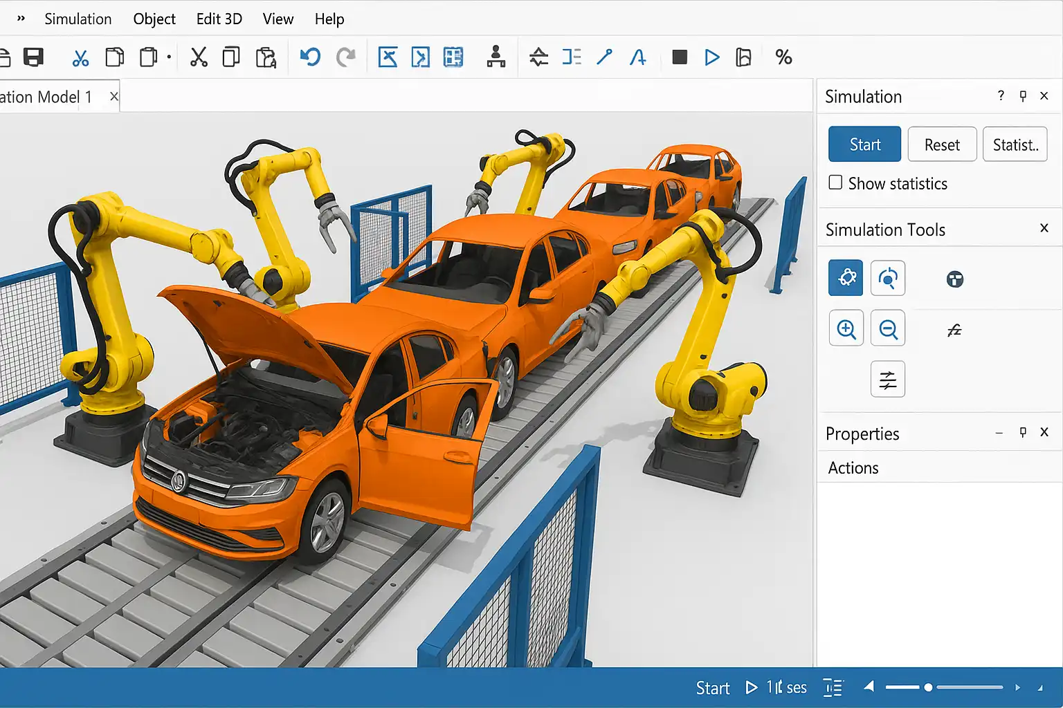 仿真汽车生产线仿真软件,是以数字化建模为基础,利用计算机模拟技术对真实生产线进行虚拟复现和逻辑推演。它广泛用于汽车制造企业的生产流程优化、设备配置、工艺调整及新产品导入等环节。