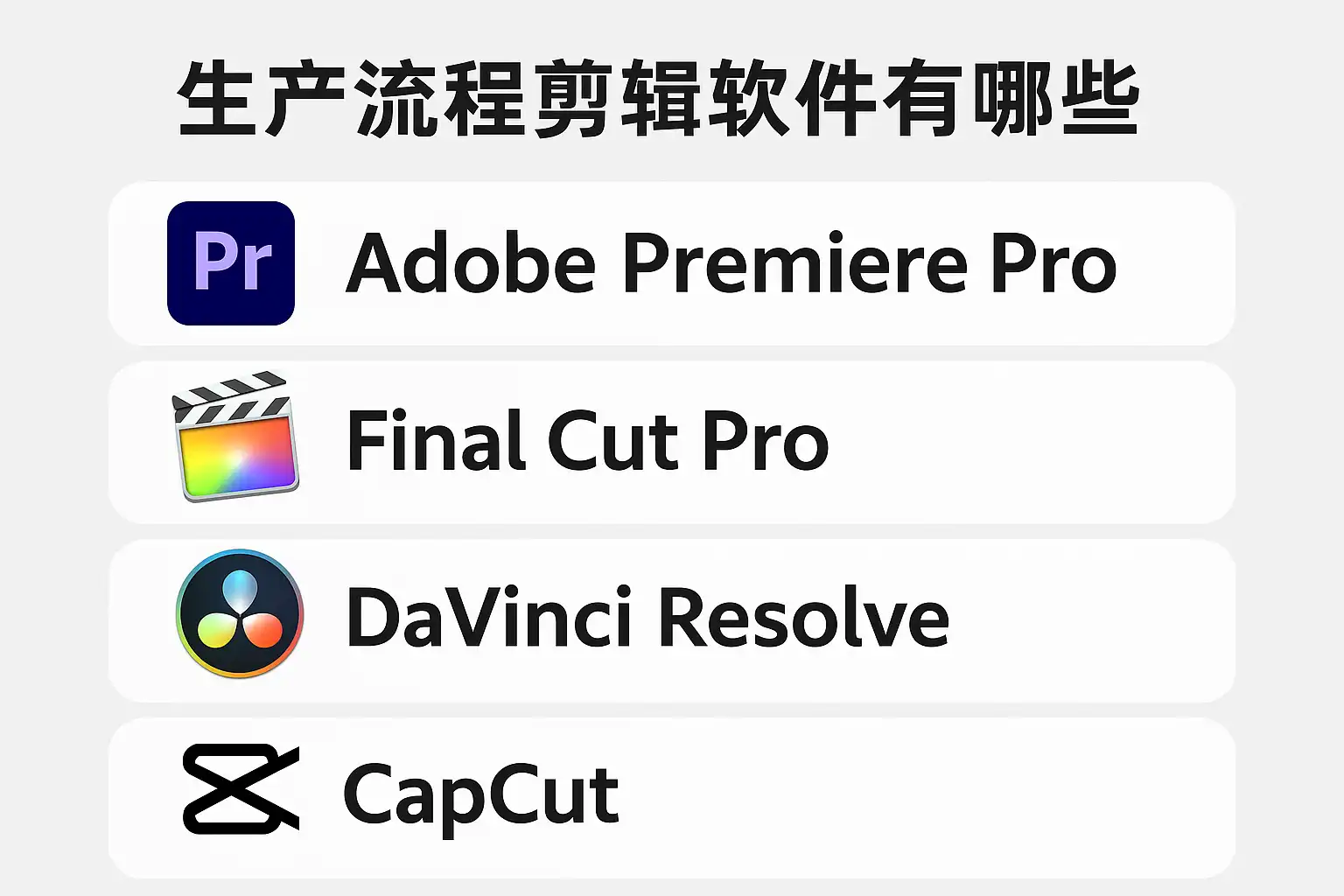 目前市面上有多款适合生产流程剪辑的软件,主要推荐以下4款: