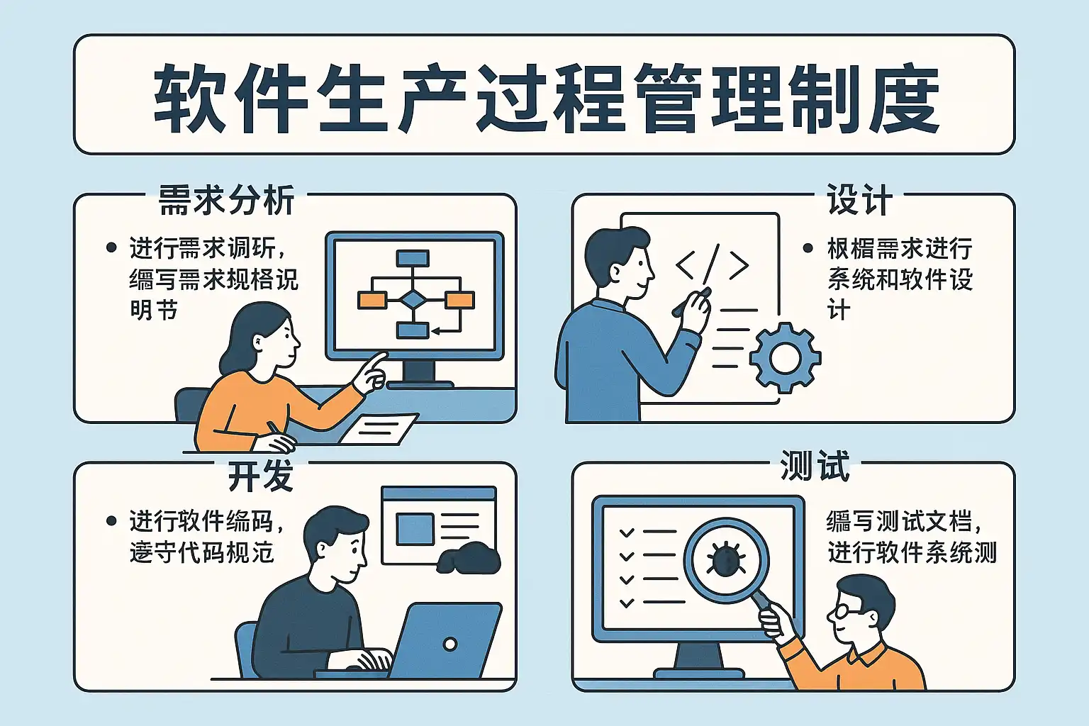 软件生产过程的管理制度应包括以下关键步骤,且每一步都有对应的制度保障与操作要点: