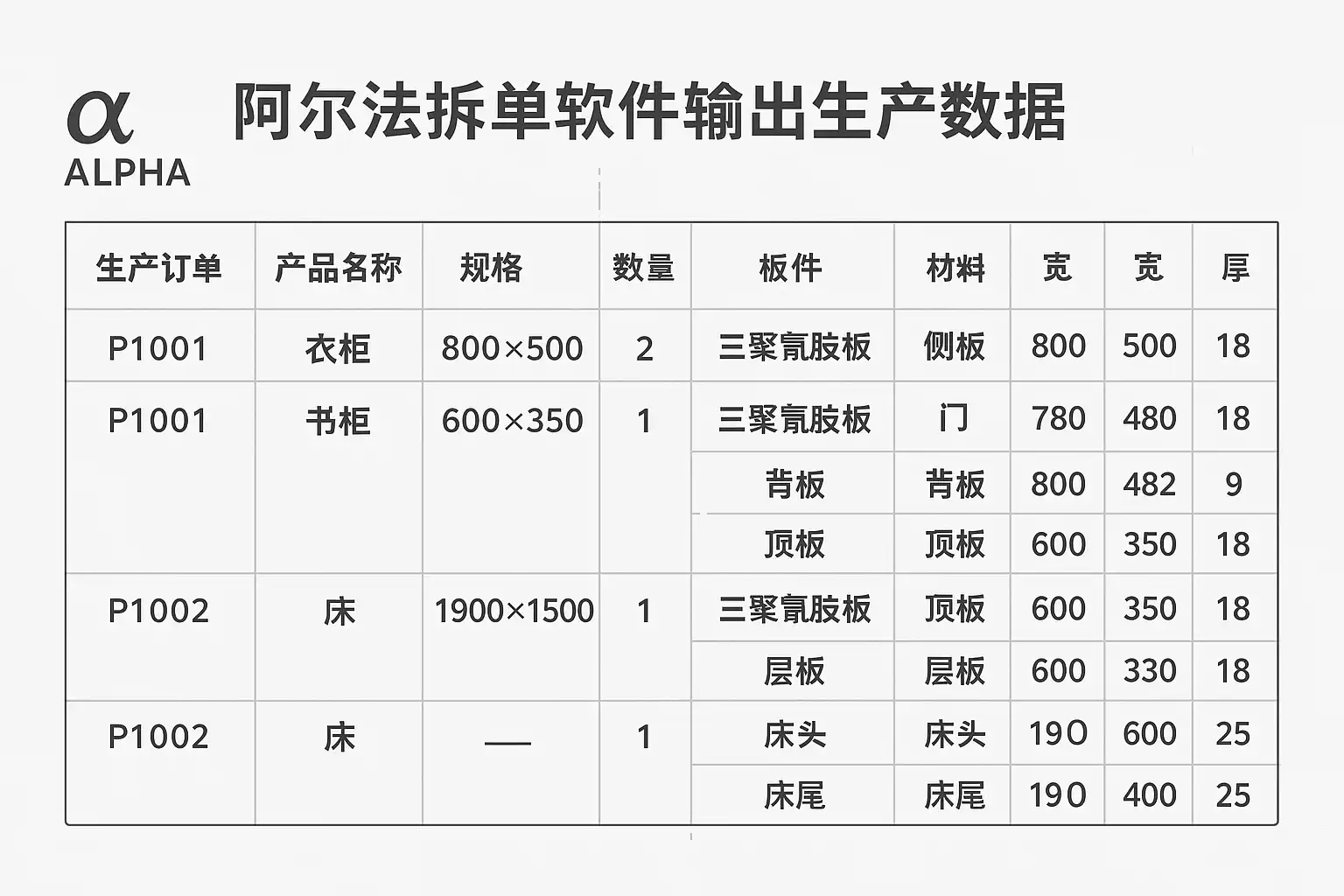 阿尔法拆单软件输出的生产数据主要包含以下关键指标: