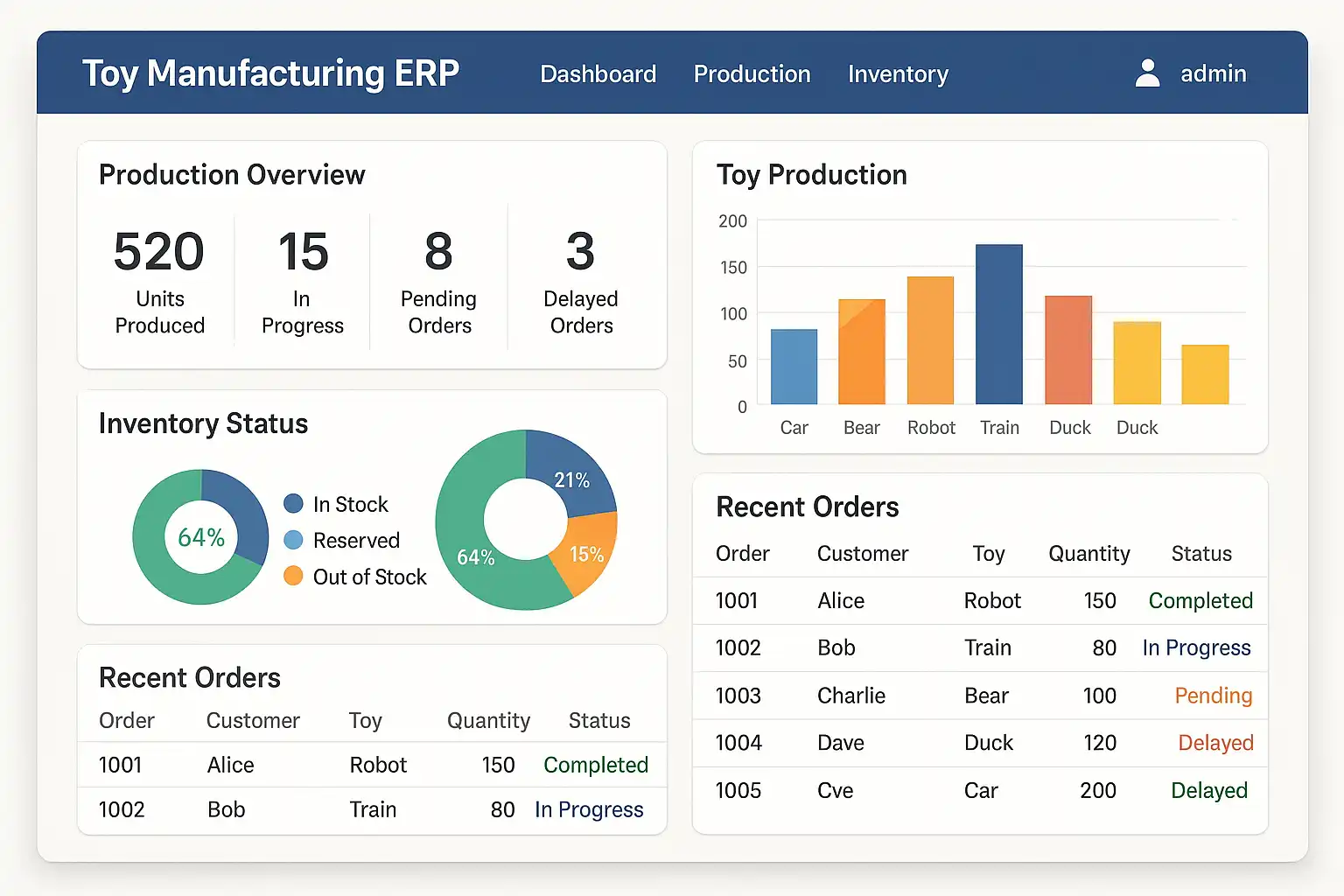 玩具生产企业管理软件定制通过引入MES(制造执行系统)、ERP(企业资源计划)集成和物联网技术,完成生产流程数字化转型:
