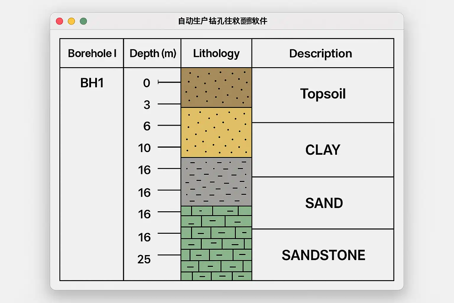 - 高度自动化: 支持数据批量导入,自动生成钻孔柱状图,无需人工干预。