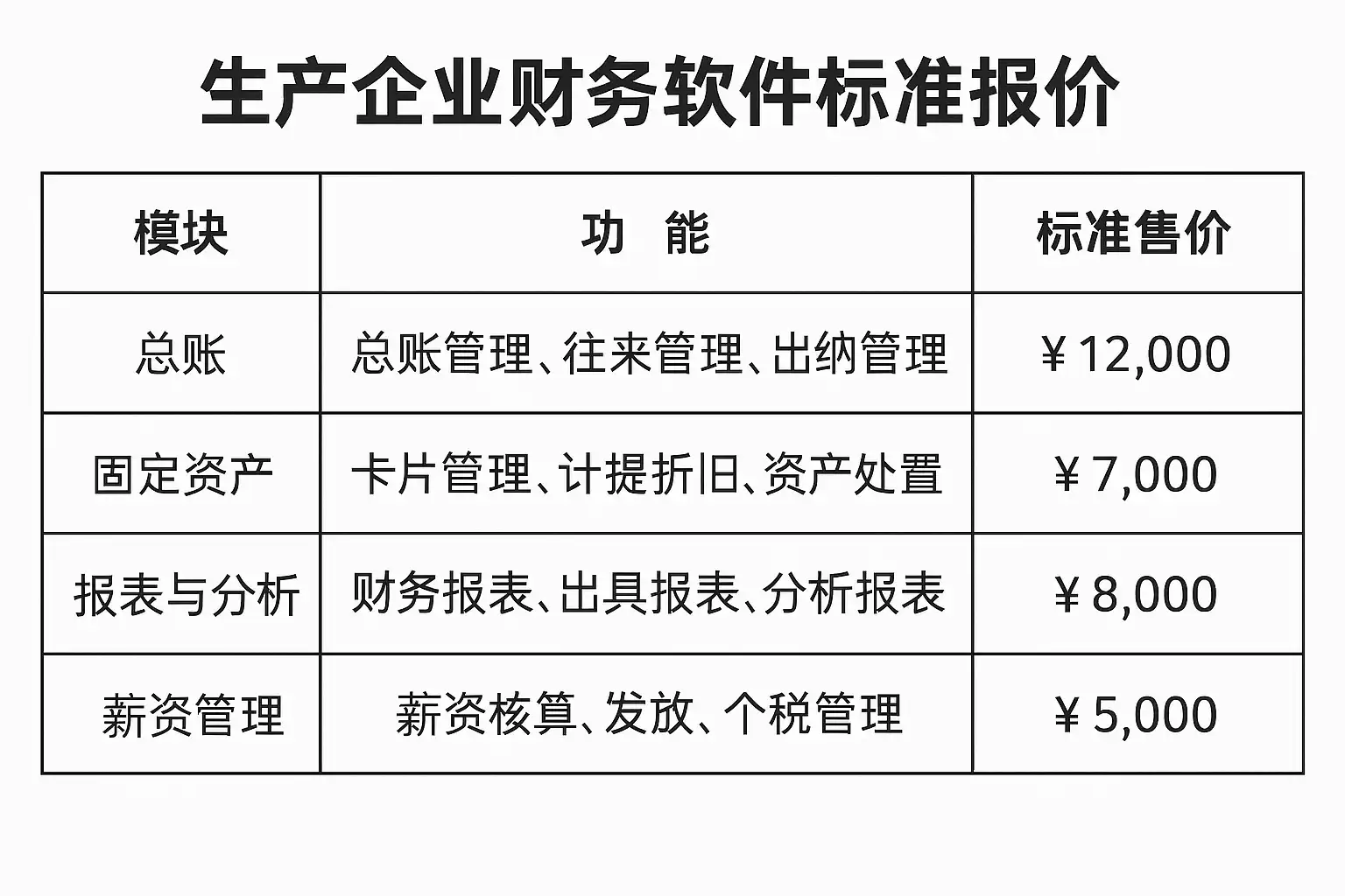 一、生产企业财务软件标准报价构成