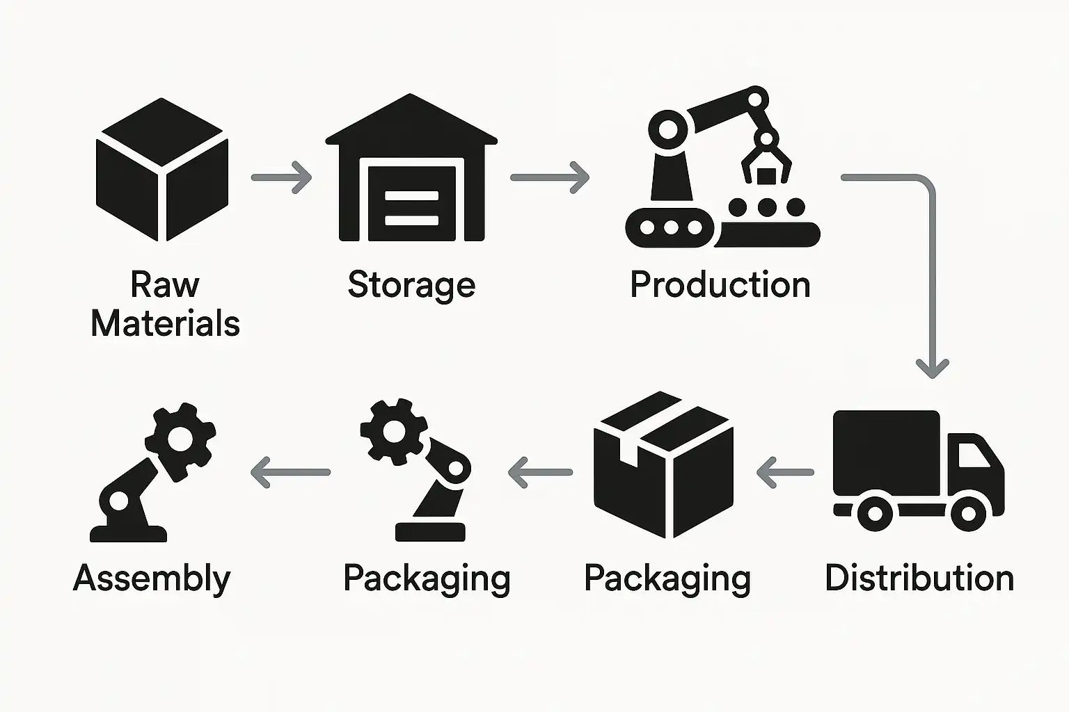| 连接符(箭头) | 表示流程方向 | 物料流动、信息传递 |