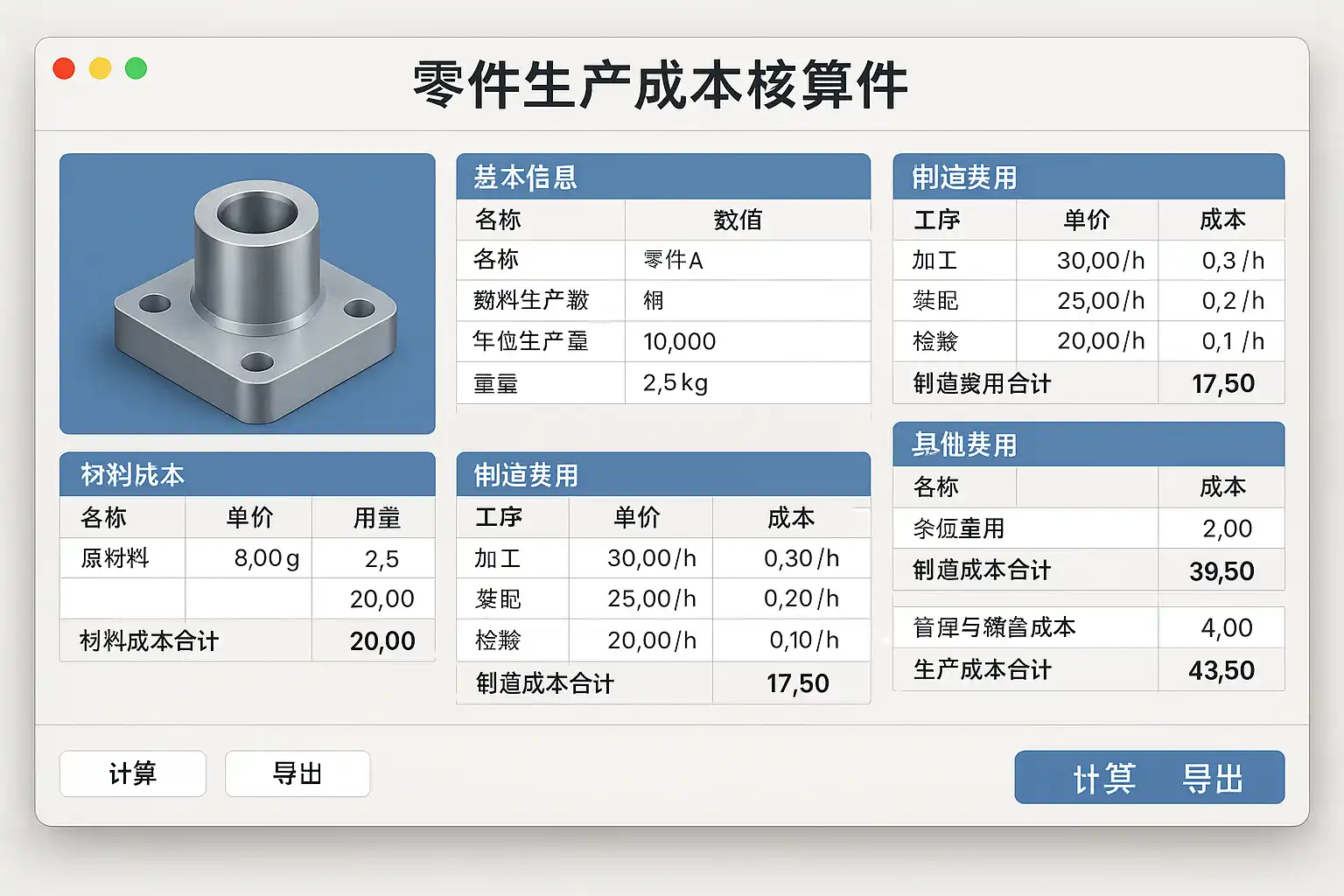 在零件生产成本核算软件的选型过程中,功能完整性是首要考虑因素。软件应当涵盖以下核心模块: