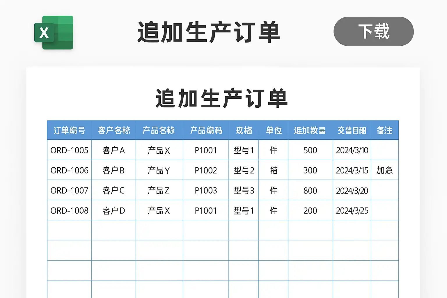 利用追加生产订单模板下载软件提升生产效率的关键在于自动化和标准化操作。具体措施包括: