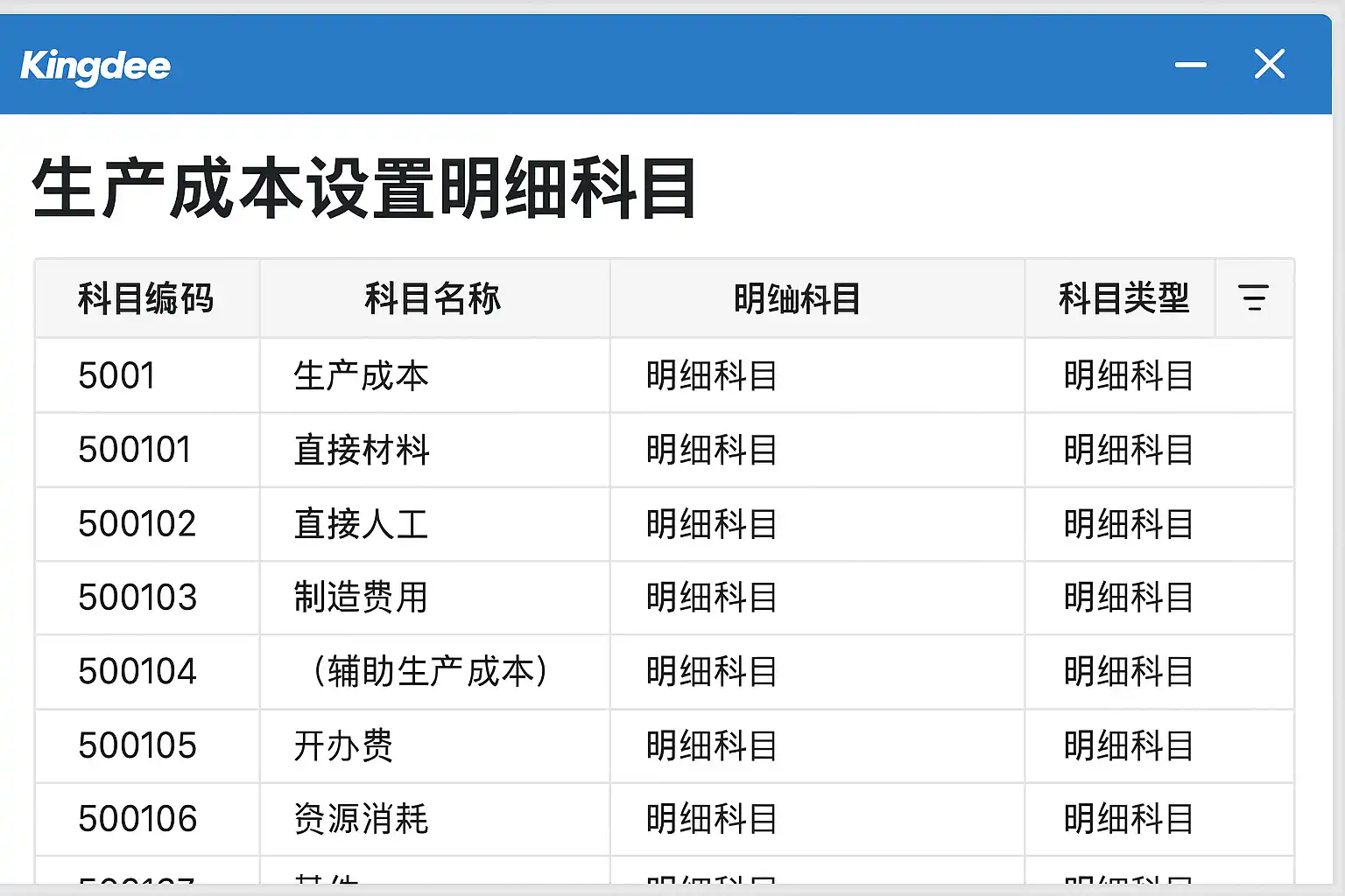 金蝶软件中如何设置生产成本明细科目?具体操作步骤有哪些?