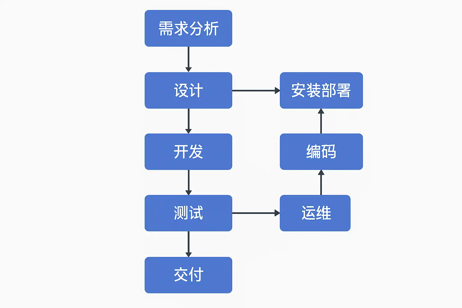| 部署发布 | 软件上线及环境配置 | 部署到生产环境供用户使用 |