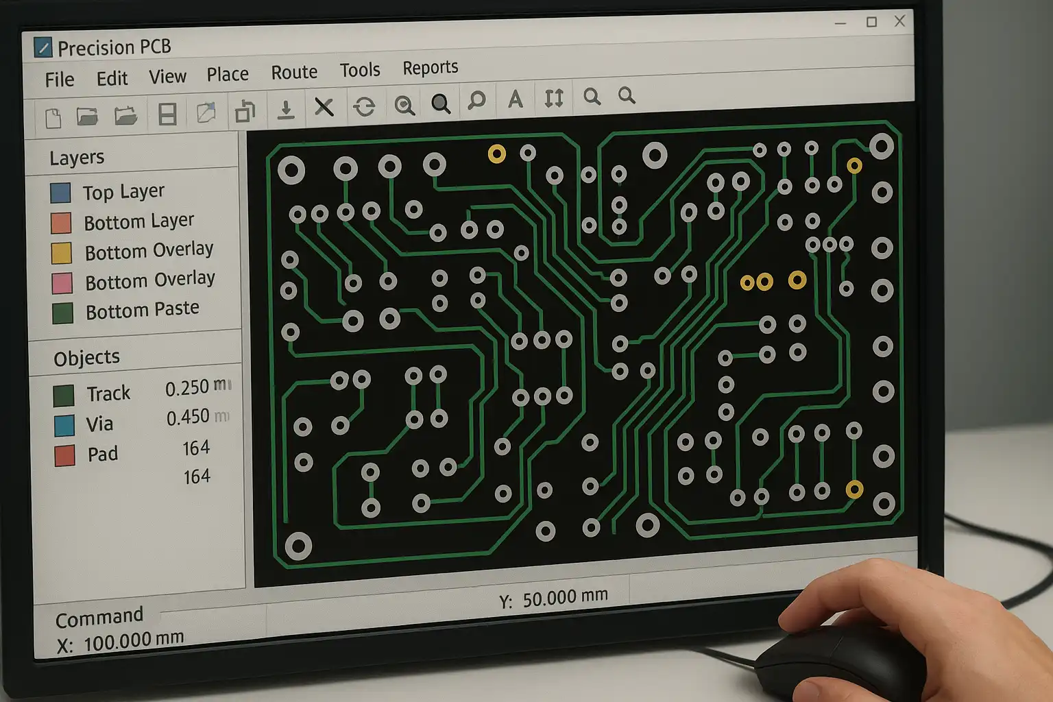 - 设计规则检查(DRC):自动检测线路间距、电气规则是否符合规范。