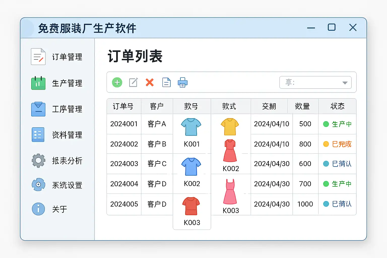免费服装厂生产软件通过以下方式提升生产效率: