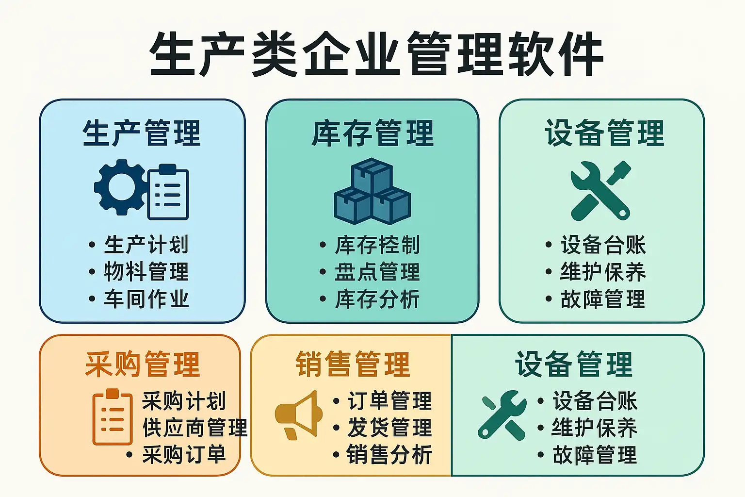 我是一家制造企业的管理者,最近在调研生产类企业管理软件,但对它们具体包含哪些核心功能不太了解。想知道这些软件能帮我解决哪些管理难题?