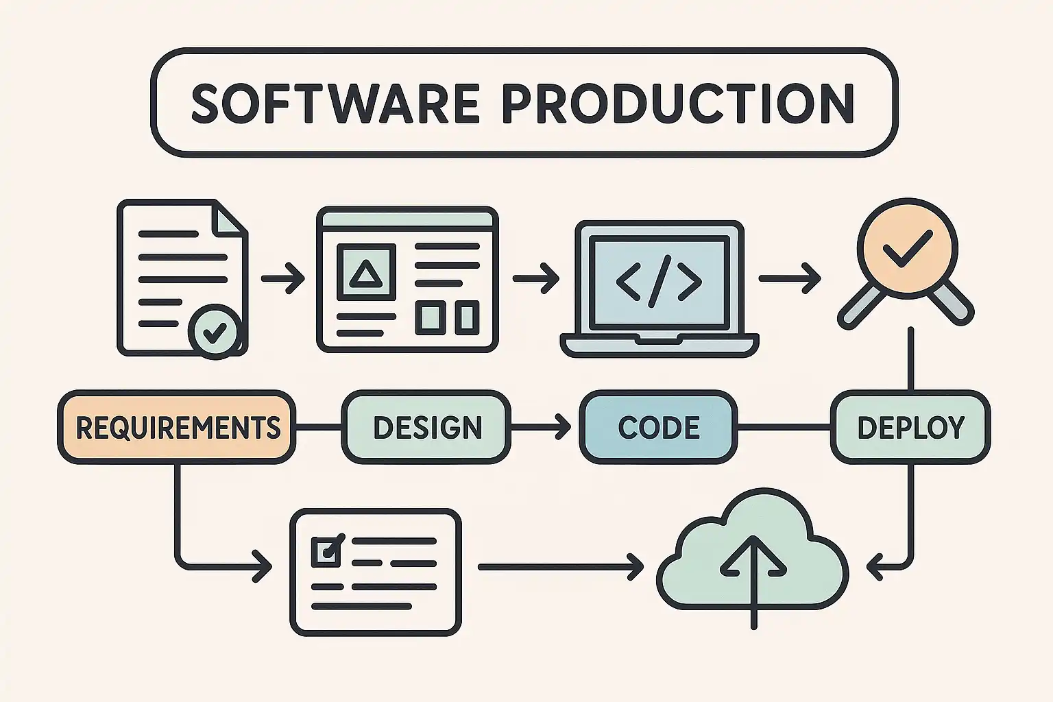 软件生产模式是指在软件开发过程中所采用的组织结构、流程规范与技术方法。不同模式适用于不同类型的项目和团队。常见的软件生产模式主要包括: