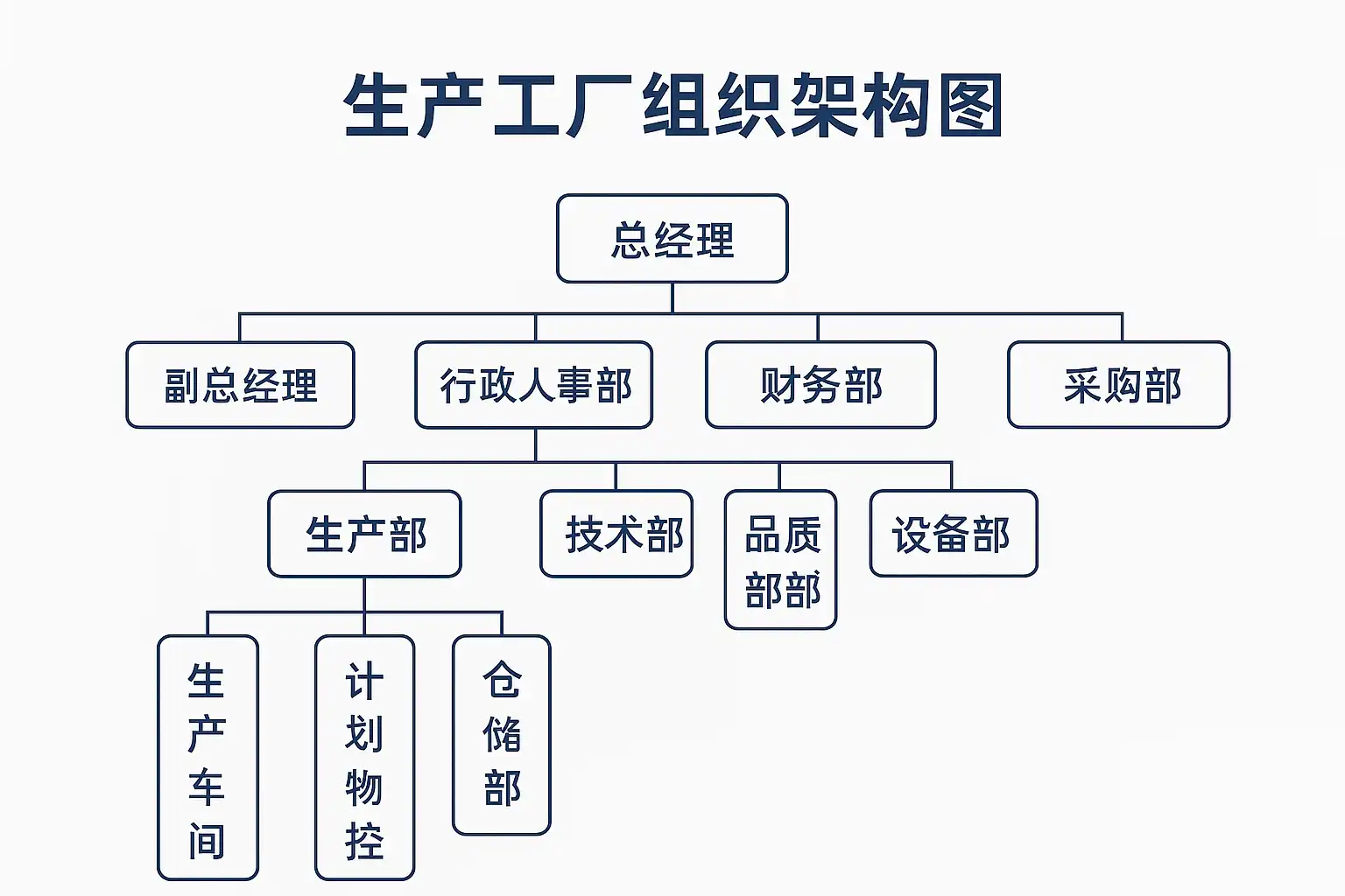 | 职能部门 | 按功能划分的部门,如生产、质检、采购等。 | 生产部门负责车间产线管理。 |