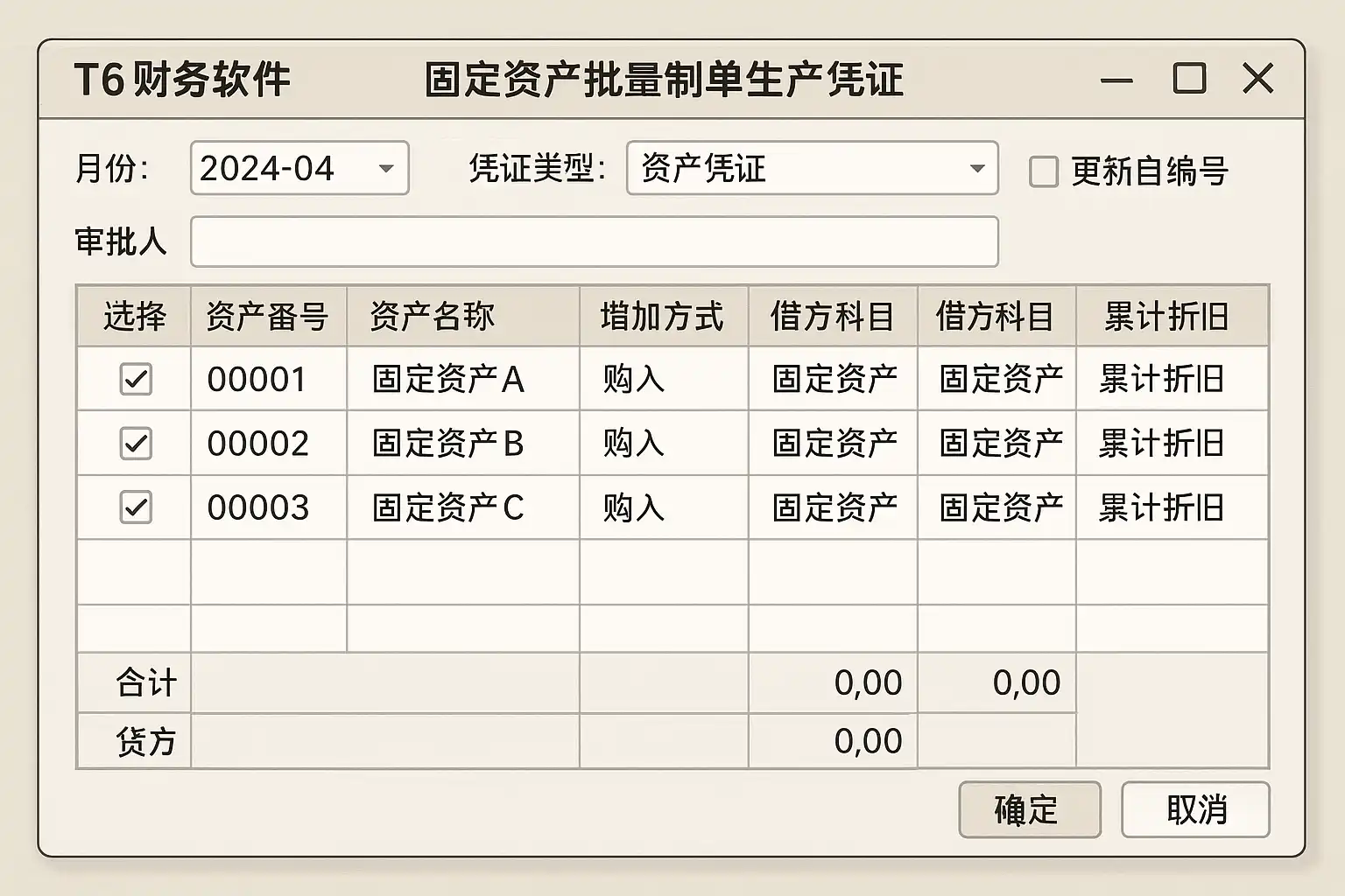 T6财务软件固定资产批量制单,如何高效生成生产凭证?