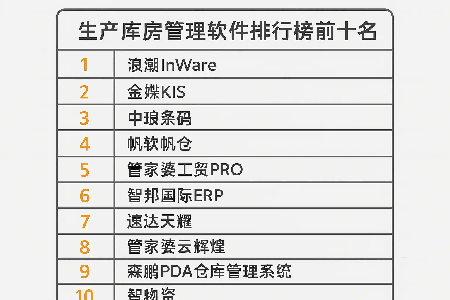 一、生产库房管理软件排行榜前十名概览