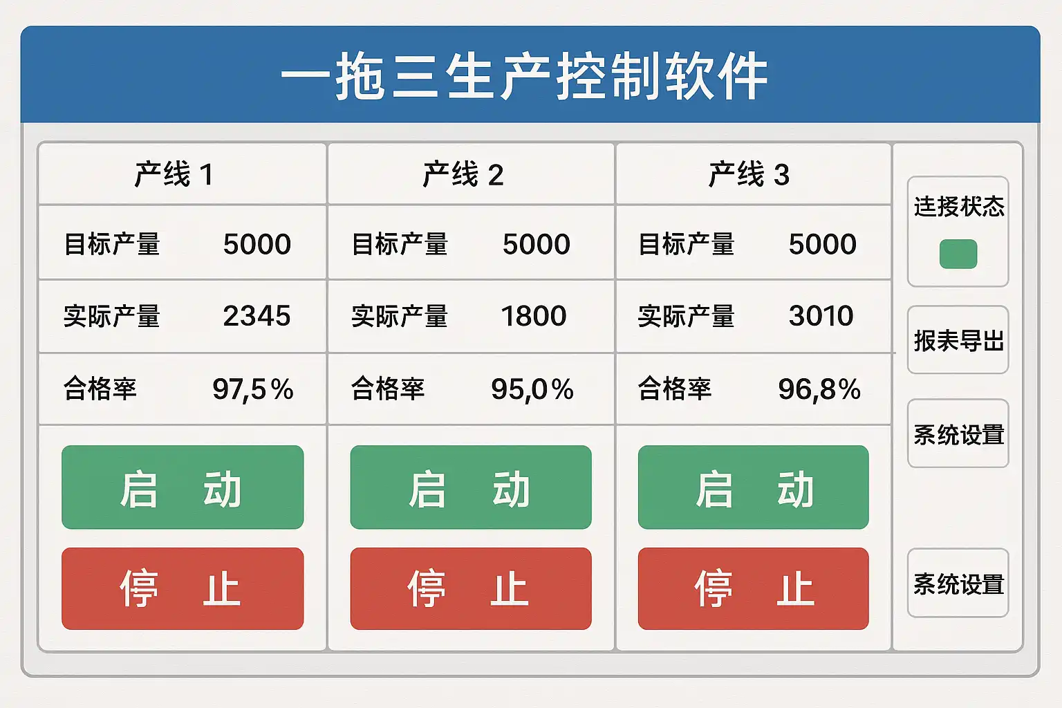一拖三生产控制软件通过集中管理多个生产线的设备和流程,实现实时数据采集与分析,从而优化生产计划和资源配置。具体提升效率体现在: