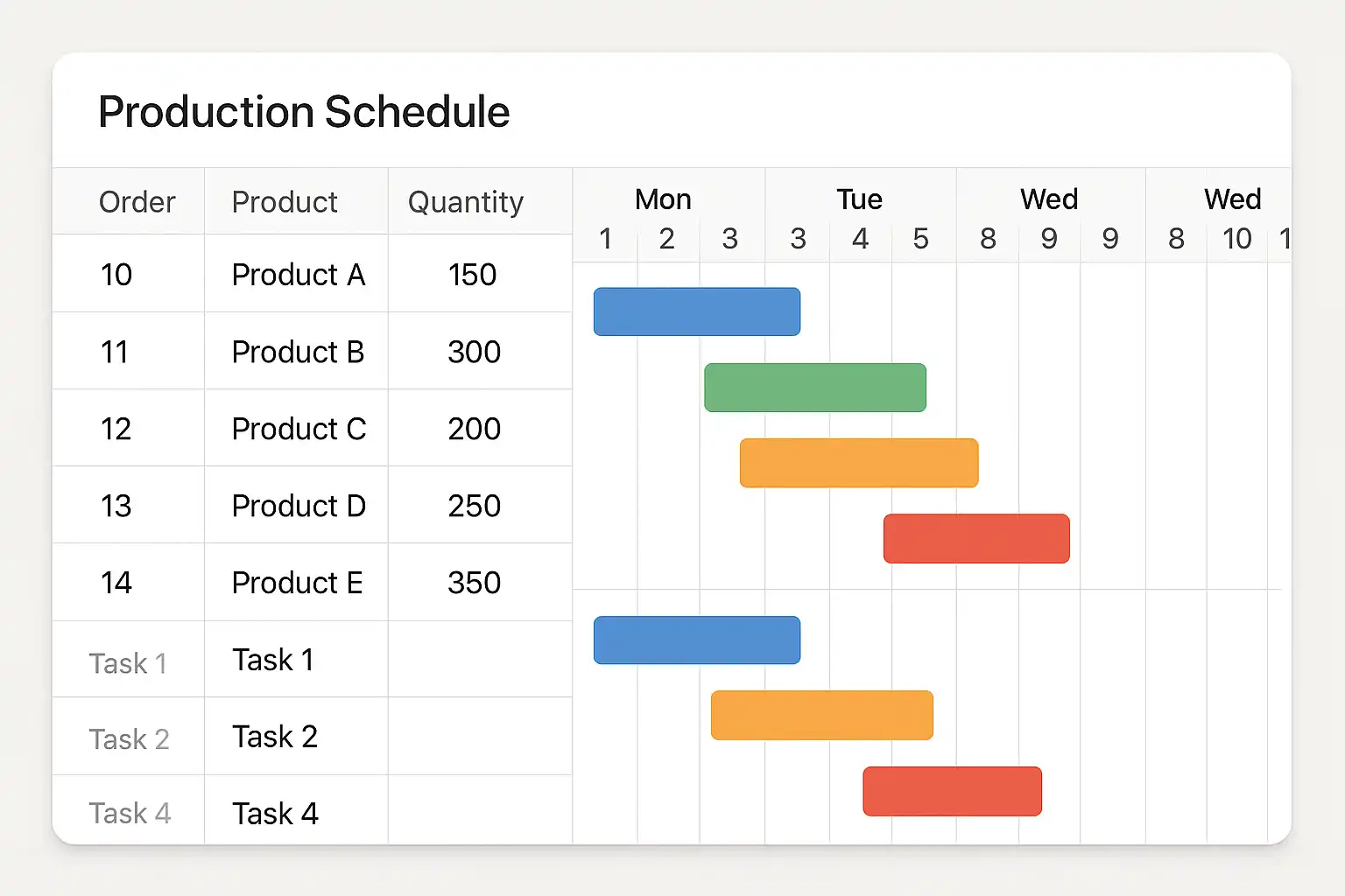 - 甘特图生产进度展示