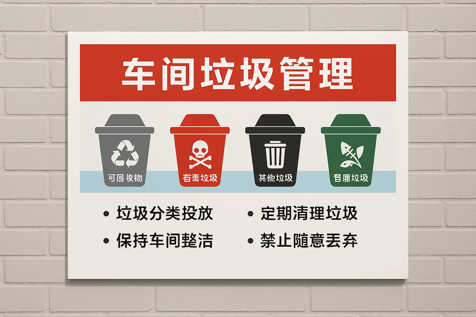 | 明确标识 | 各类废弃物区分明显,张贴标识说明 | 降低误投率,提升处理效率 |