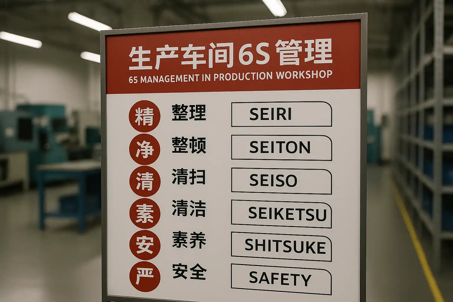 6S管理体系来源于日本,是在5S(整理、整顿、清扫、清洁、素养)基础上增加了“安全”要素的现场管理方法。其目的在于通过系统性管理,提升生产现场的有序性、规范性及安全性,从而促进效率提升和品质保障。
