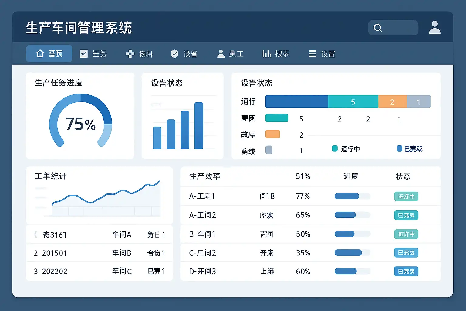 1、管理层实时掌控生产全貌 通过系统后台,管理层可以随时查看各生产线的实时状态,包括工单进度、设备运行、物料余量等,决策不再依赖口头汇报或纸质文档。