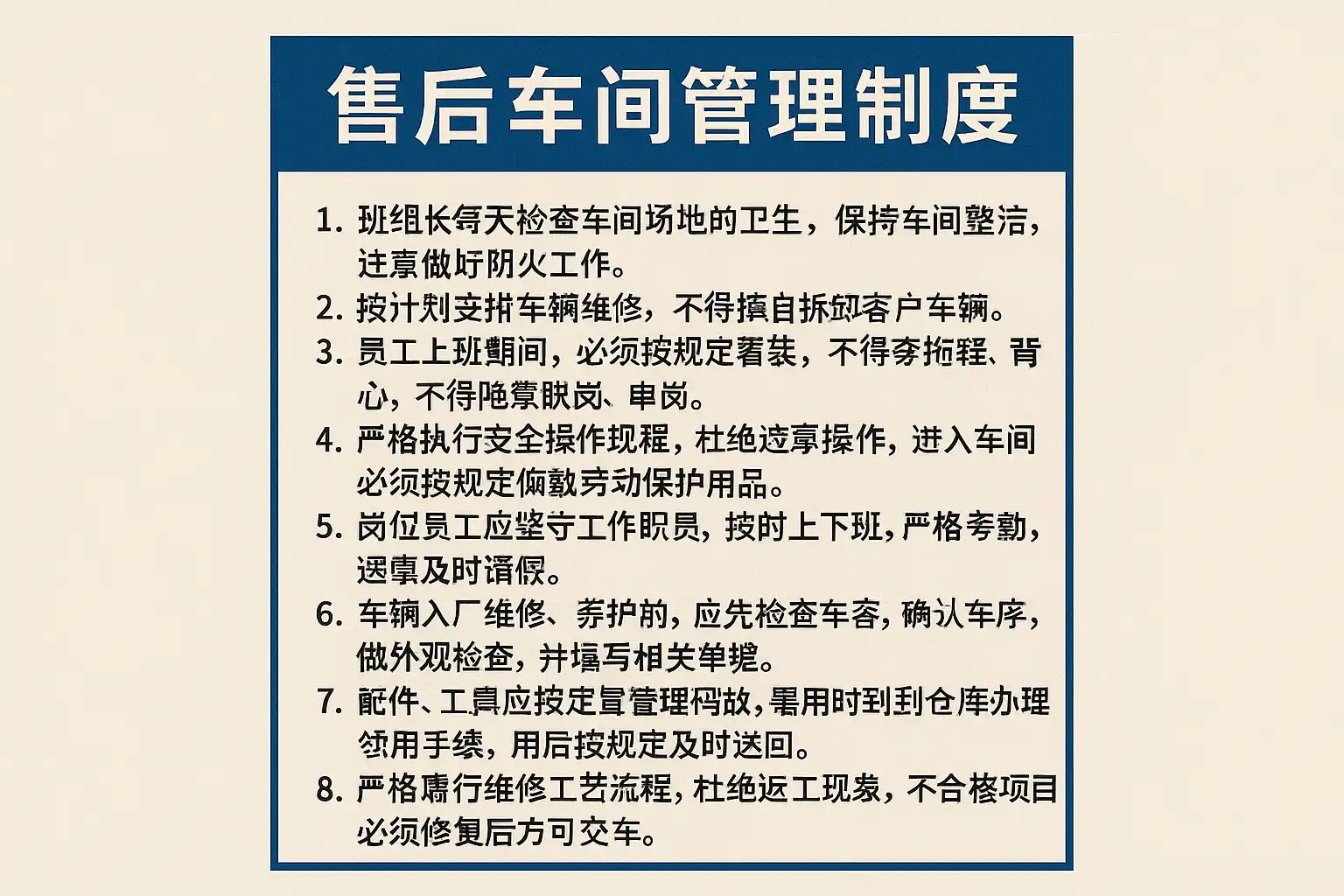 作为售后车间的管理者,我经常困惑应该重点关注哪些管理制度内容,才能确保车间运转高效且规范?