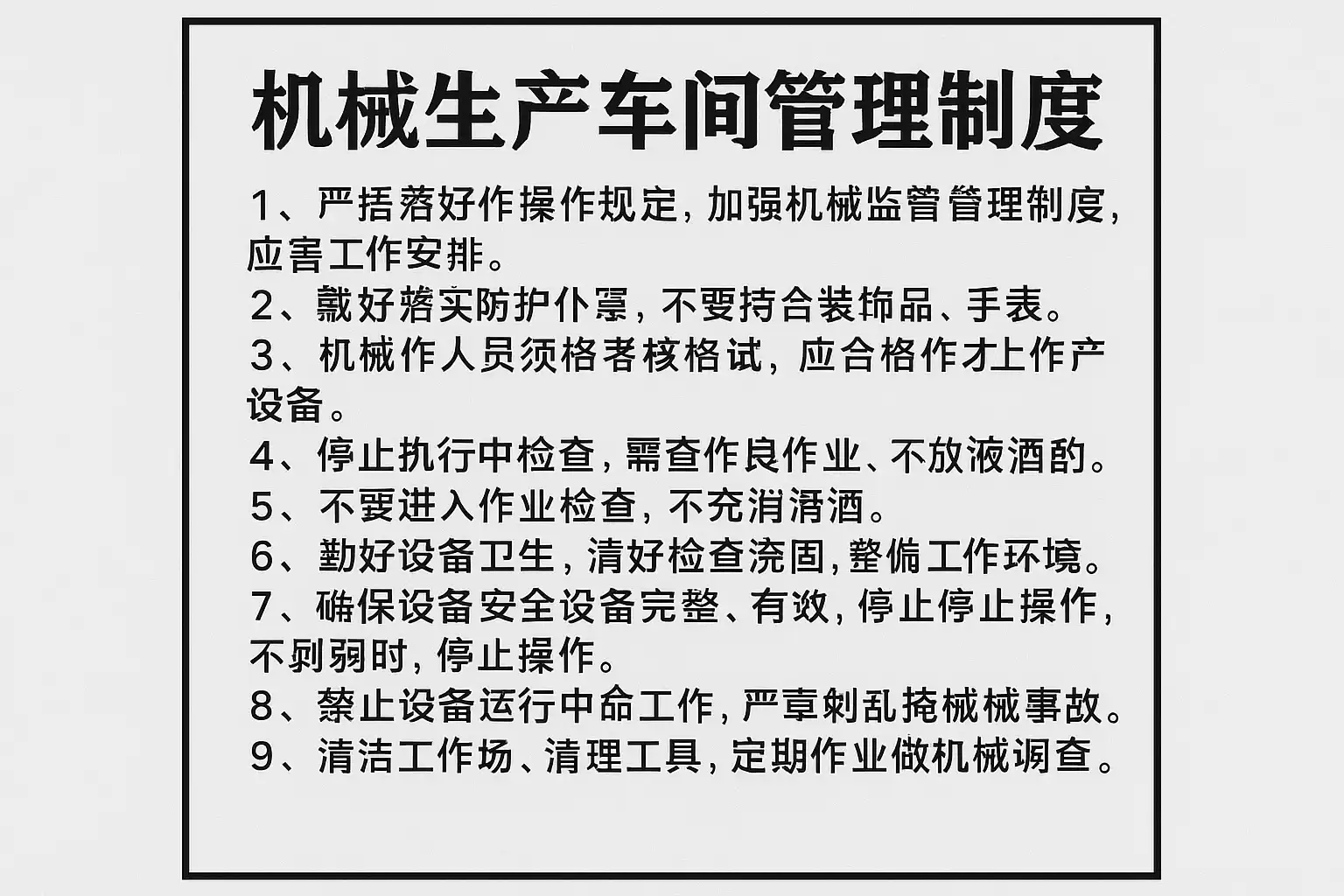 我刚进入机械生产行业,听说车间管理制度很重要,但具体包括哪些方面呢?想了解机械生产车间管理制度的核心内容,才能更好地遵守和执行。