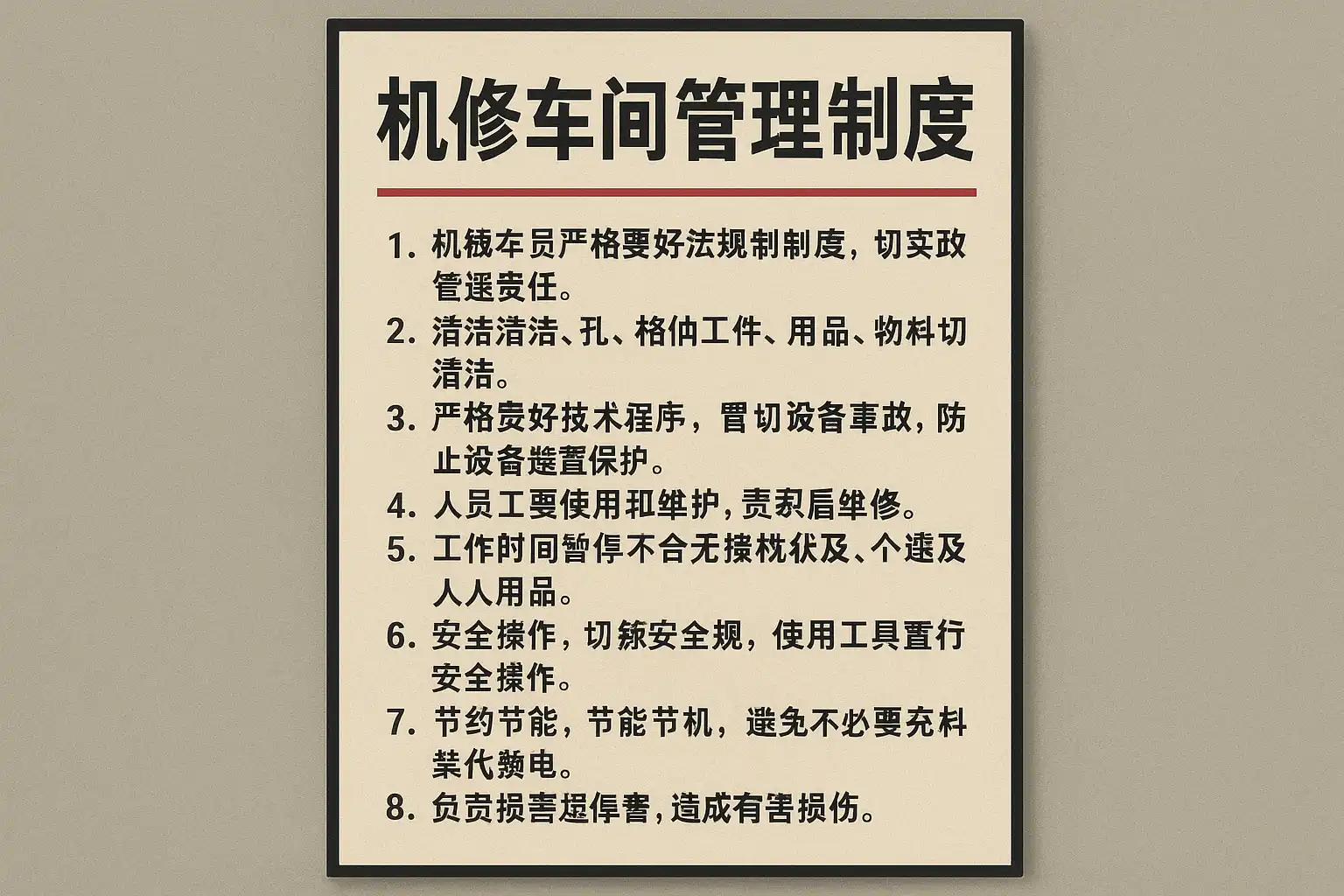制定科学的机修车间管理制度是提升车间管理效率的关键。优化技巧包括: