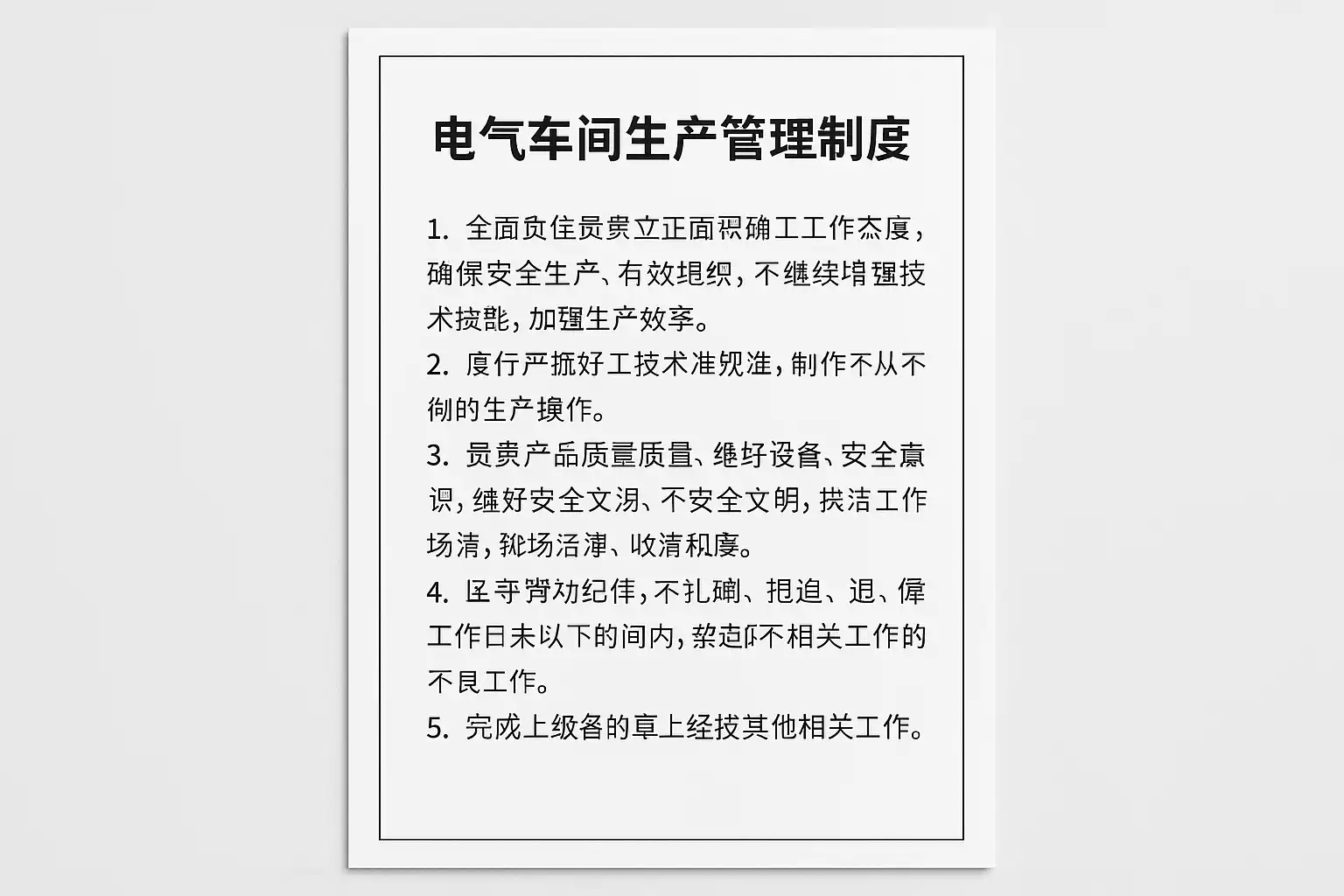 - 安全生产规范:严格遵守安全操作规程,保障员工人身安全。
