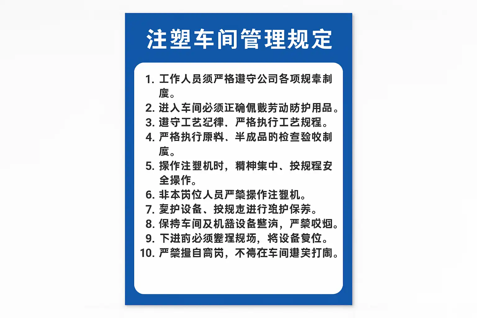 作为一名新入职的注塑车间管理人员,我对车间管理规定的具体内容感到困惑。能不能详细说明注塑车间管理规定的核心要点?