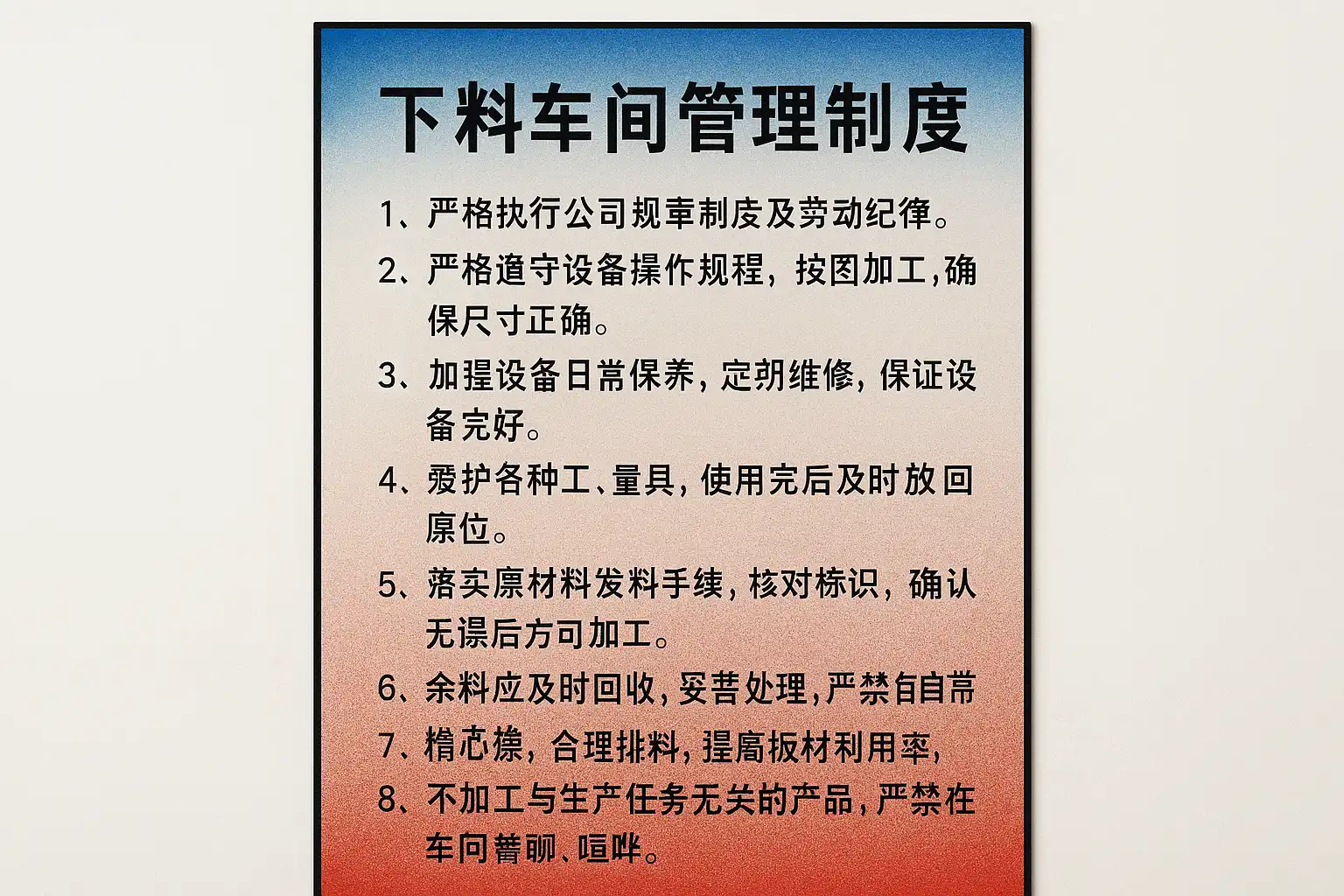 制定下料车间管理制度时,应重点关注以下几个方面以提升生产效率: