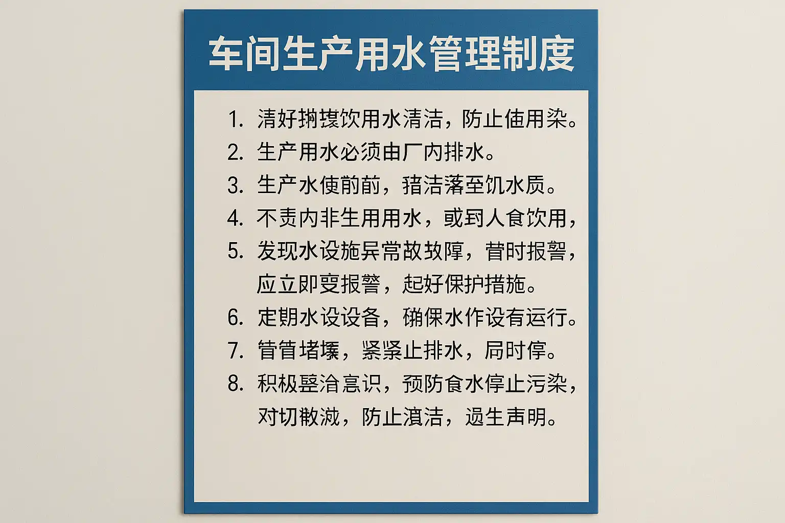 (一、制度建设的核心内容) 科学的生产用水管理制度是提升用水效率的基础。该制度应涵盖以下几个方面: