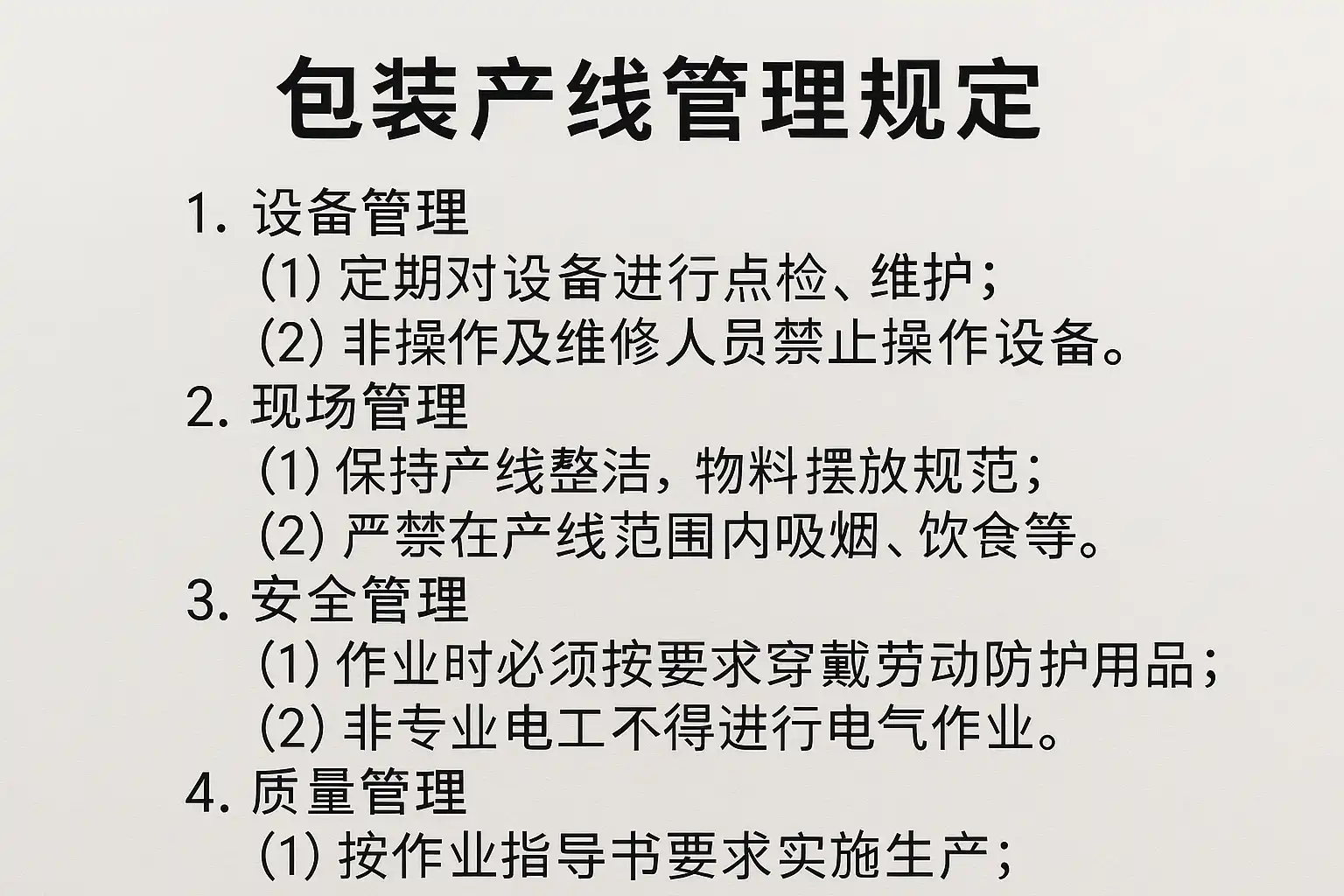 包装产线管理规定主要涵盖以下几个核心内容: