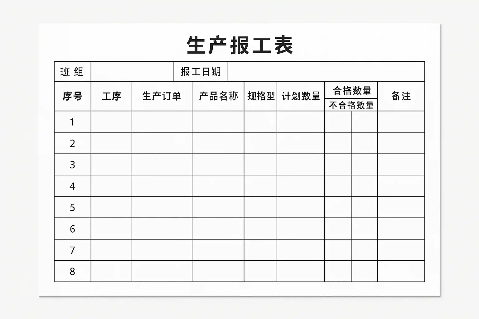 - 明确必填字段(如工号、工序、产品编号、数量、工时等),避免遗漏关键信息;
