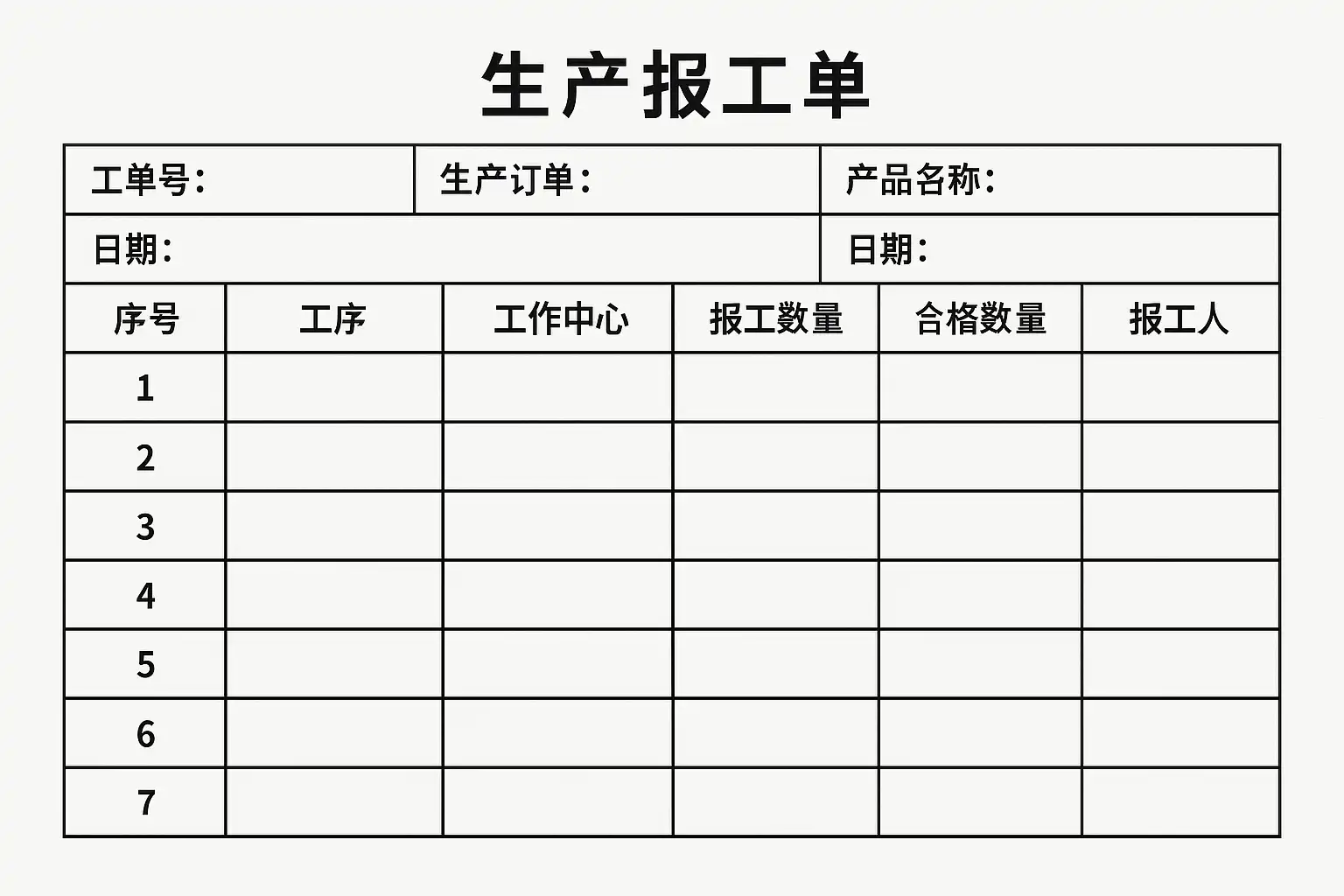 - 字段应精简但完整,既满足生产跟踪与统计需求,又避免过度冗杂影响填写效率。