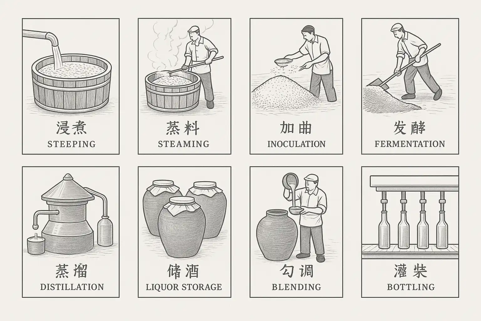 | 原料准备 | 选择高质量高粱、小麦等 | 品种、产地、储存条件 | 决定香气与风味基础 |