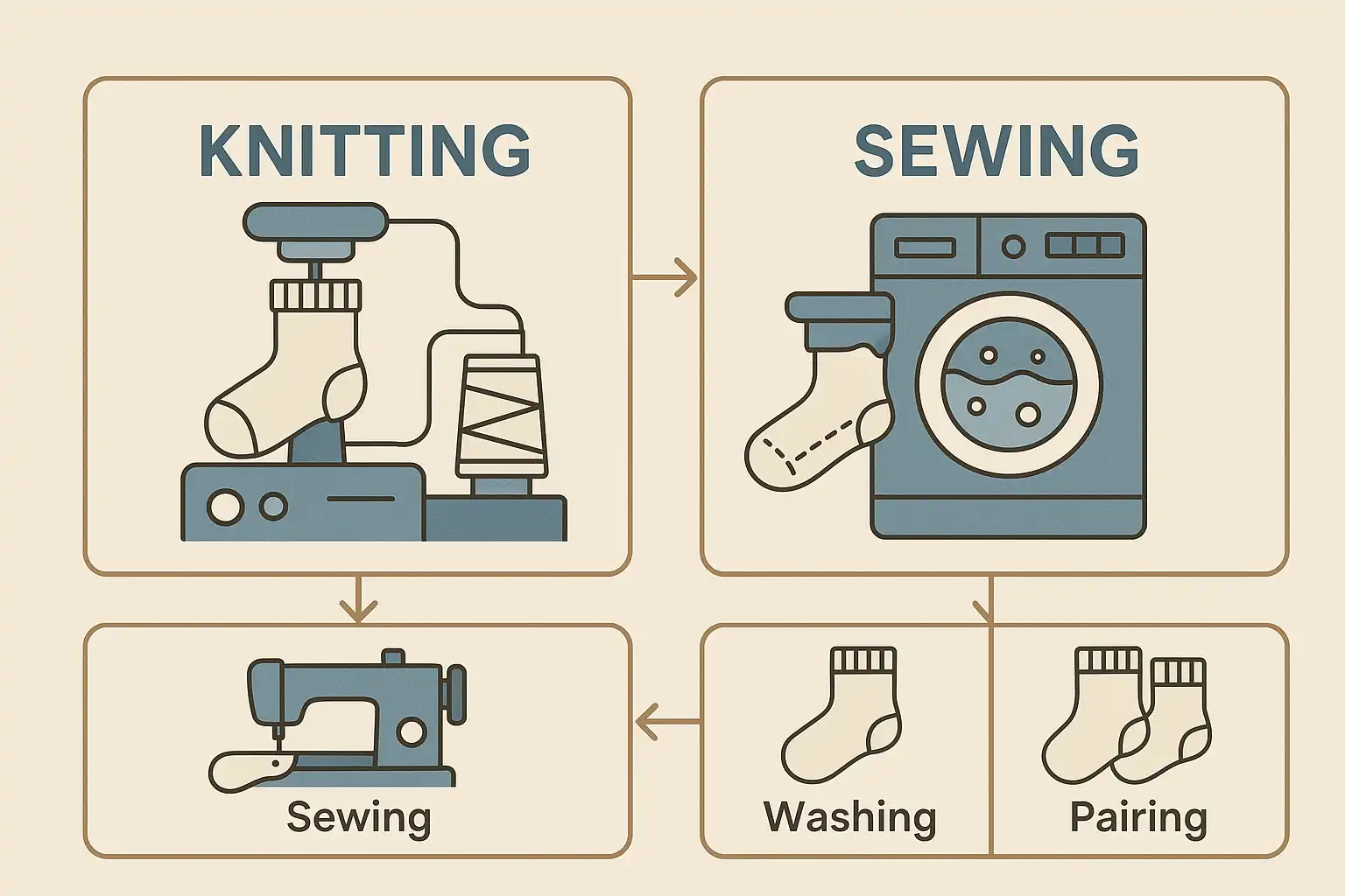 背景说明: 袜子生产的流程若不加以科学规划,极易导致工序积压、返工、次品率提升。例如,缝头工序效率低下会导致大量袜坯等待,影响后续定型、检验环节。科学规划不仅保障生产顺畅,还能显著降低单位成本。