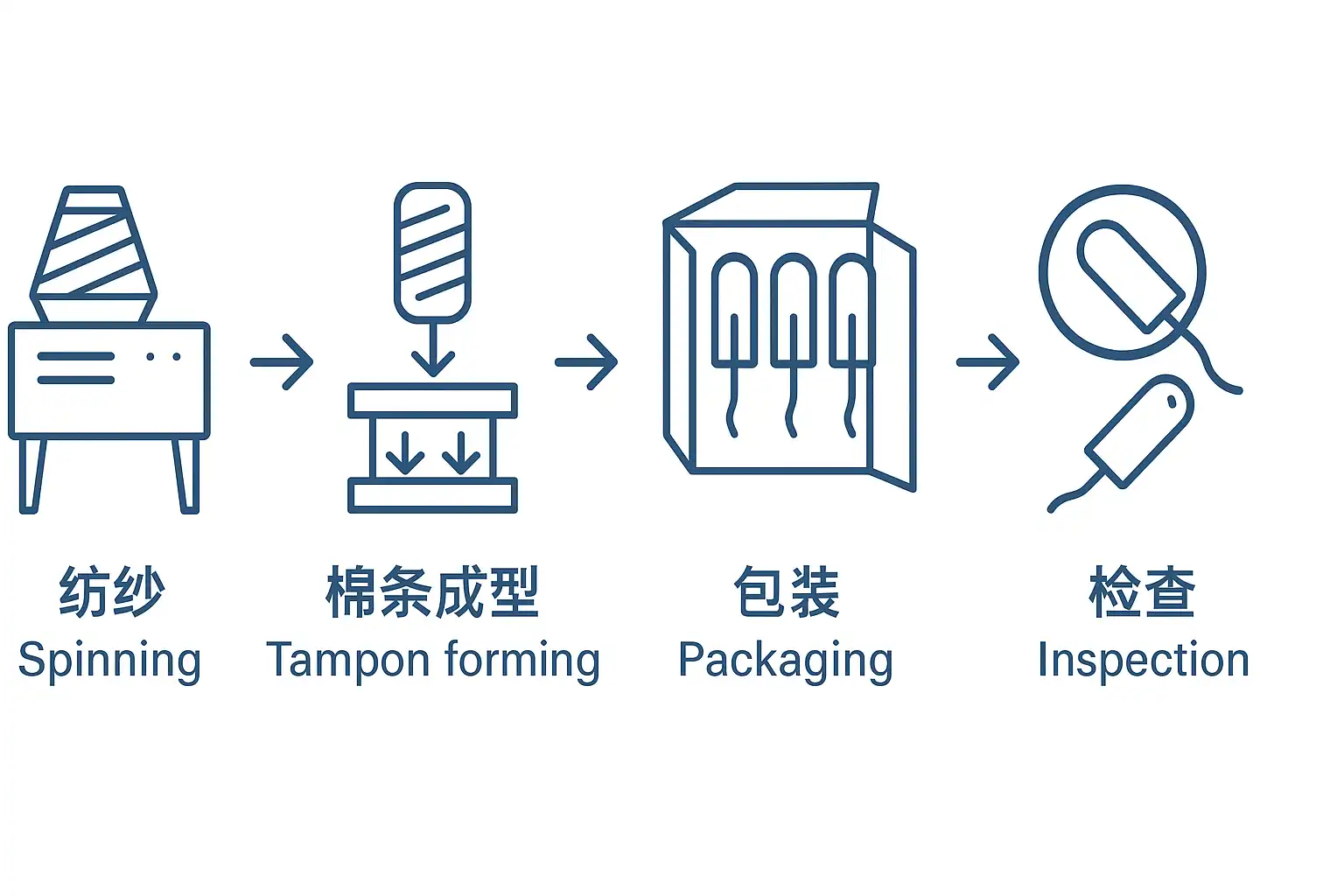 我最近对棉条的生产流程很感兴趣,想知道从原材料到成品,棉条生产工序具体包含哪些步骤?这些步骤是如何保证产品质量的?