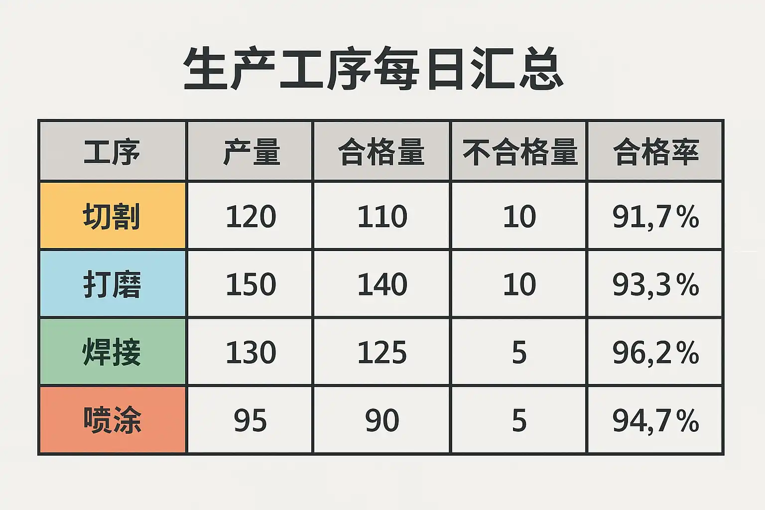 - 数据分类与分析:将汇总数据按工序、时间、设备等分类,找出生产瓶颈。