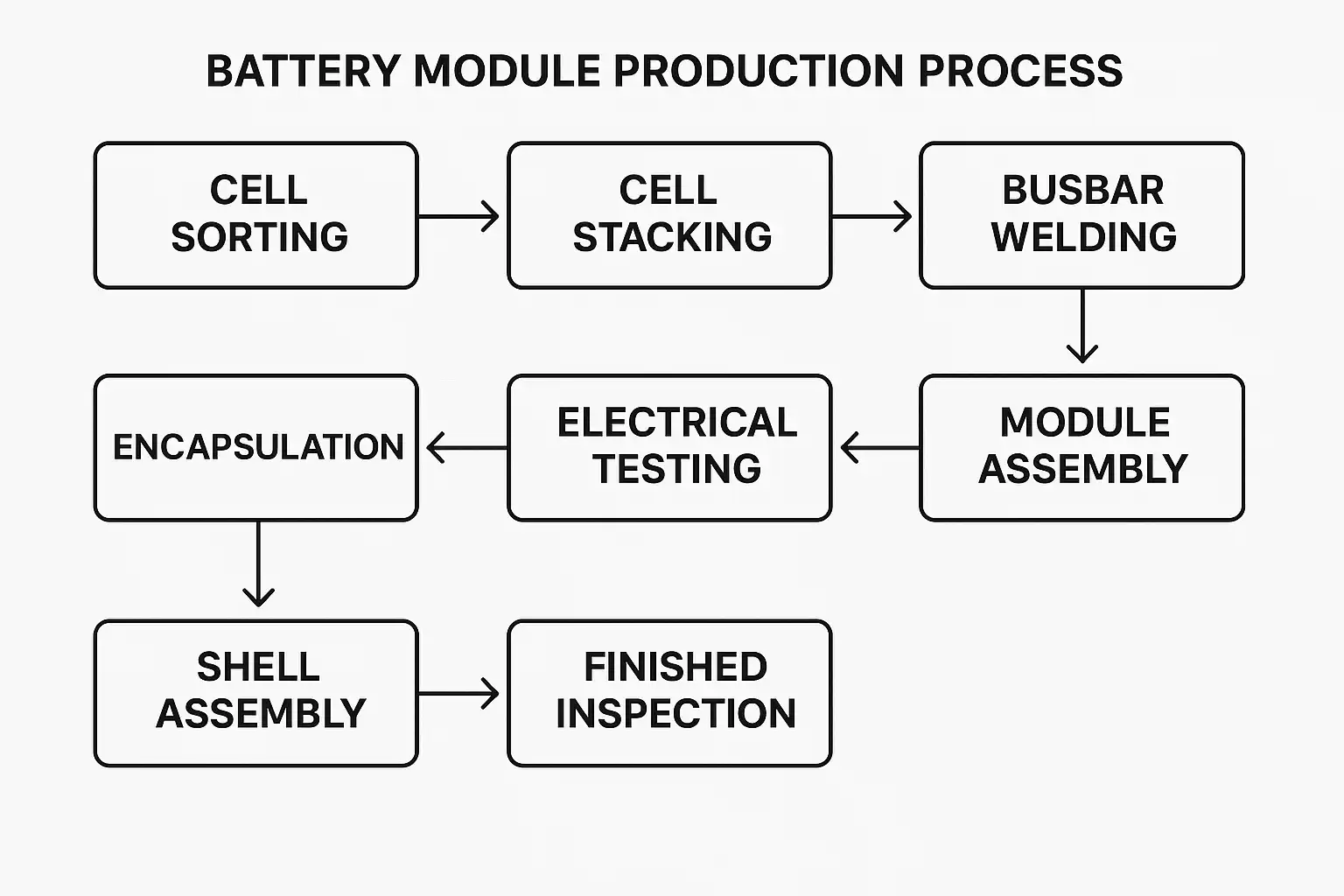 综上所述,电池模组生产质量与效率的提升依赖于标准化工艺流程设计、自动化与信息化管理、完善的质量检测体系及人员培训的综合作用。建议企业: