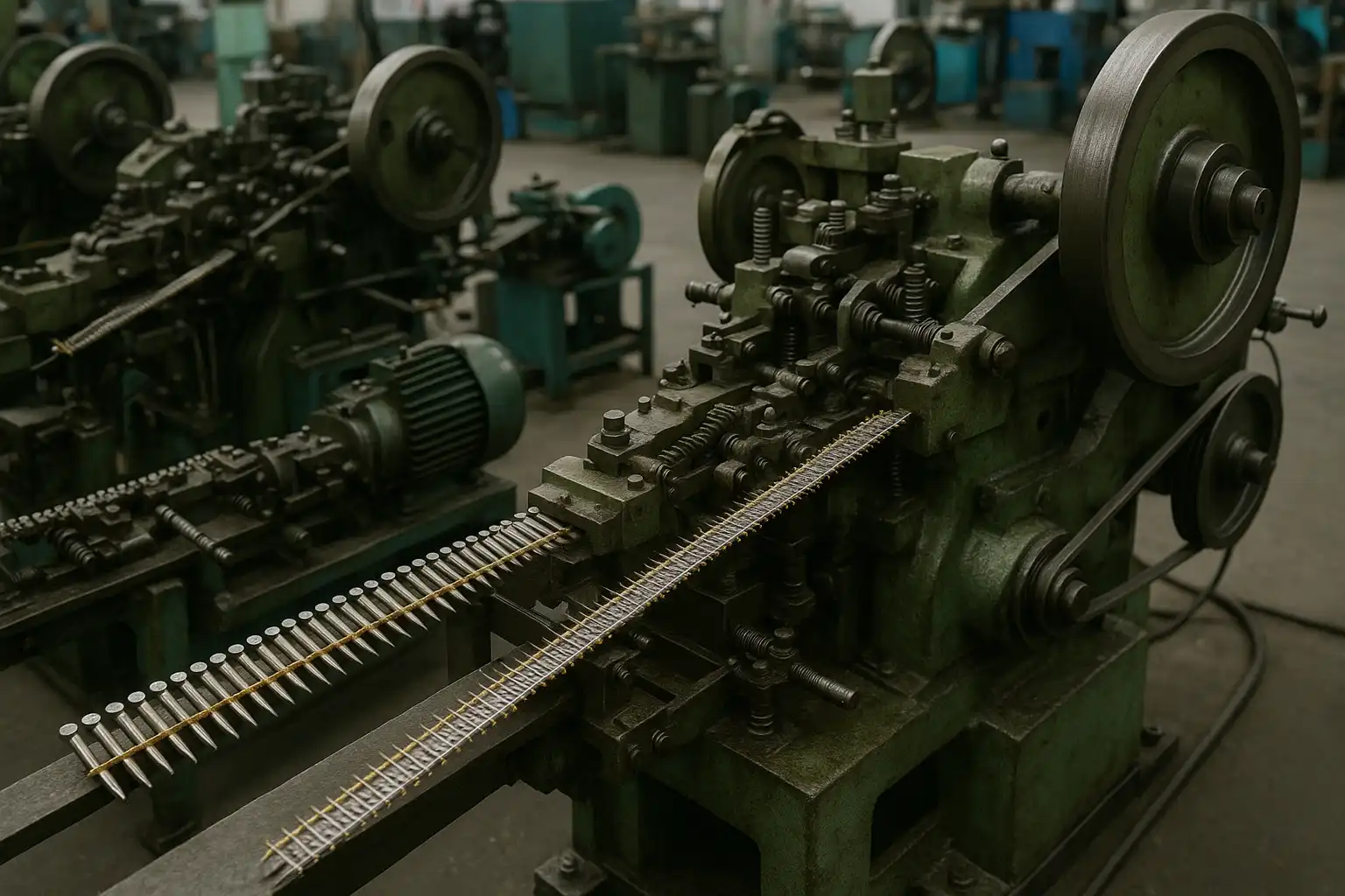| 7. 排钉组装 | 利用自动化设备将单钉通过胶带、铁丝或塑料条组装成排,便于连续打钉 |