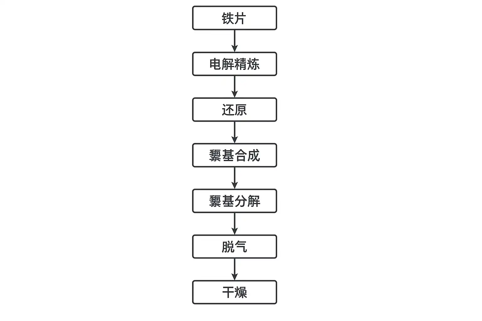 羰基铁粉的生产工序主要包括以下关键步骤: