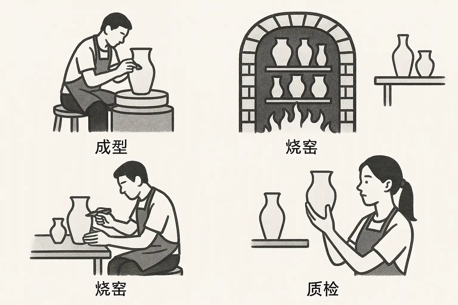 - 烧制工艺:分为素烧和高温釉烧,烧制温度一般在1000℃至1300℃之间;