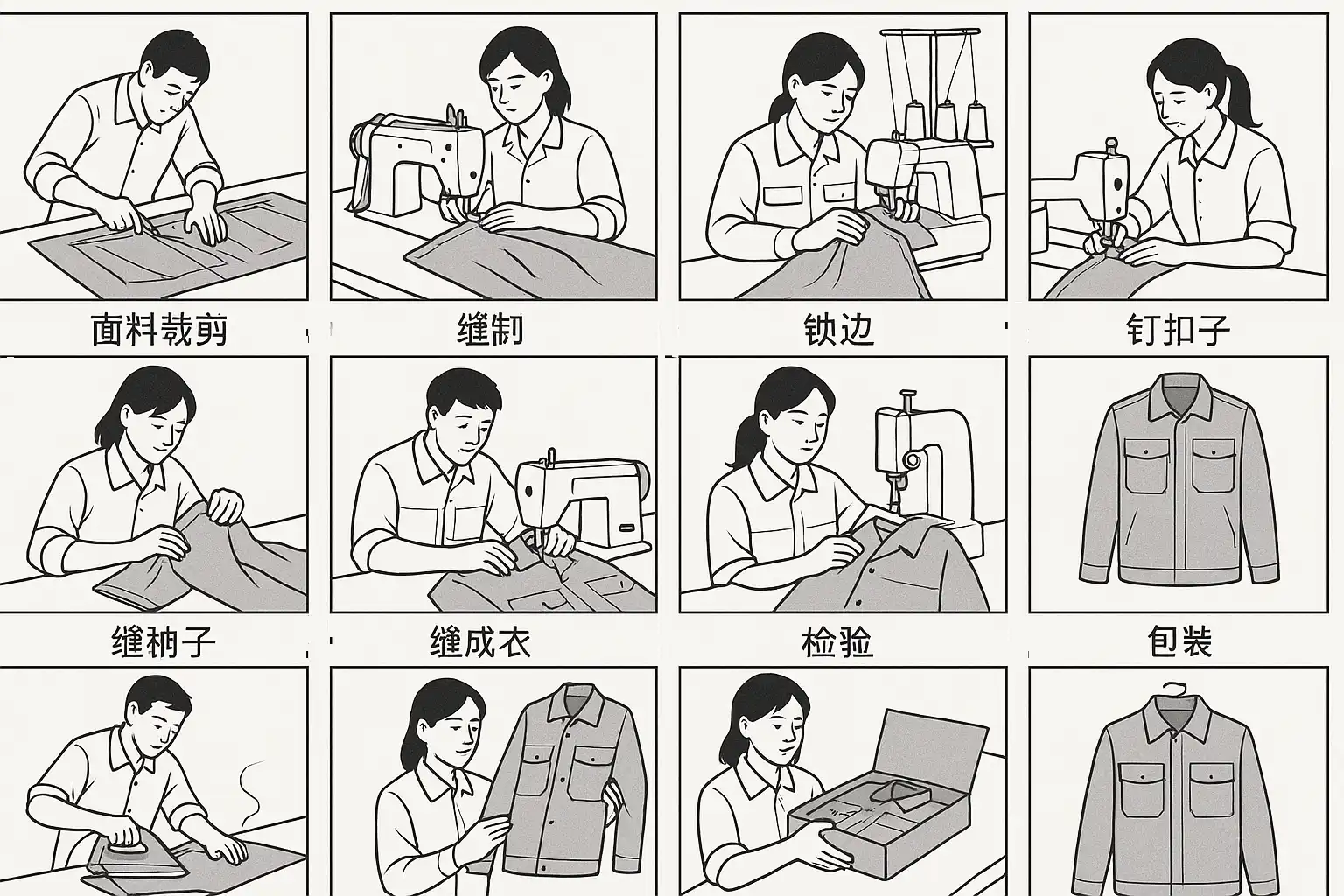 - 整烫 — 保证外观整洁,提升视觉质量。