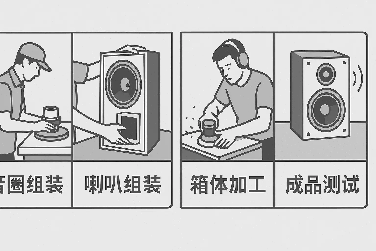 我对音箱制造流程很感兴趣,但不太清楚具体都包含哪些步骤。能否详细说明音箱生产工序的主要环节?