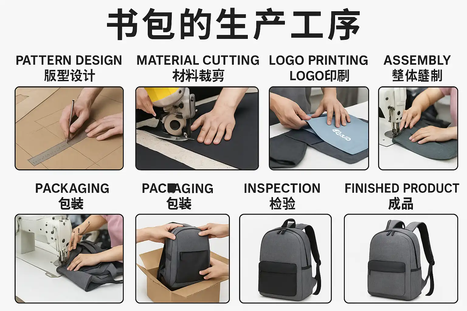 - 包装出货。此流程确保书包在耐用性和美观性上达到行业标准。