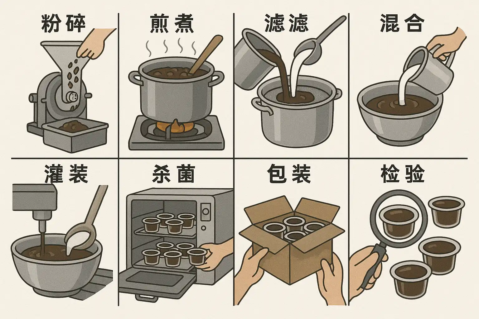 龟苓膏的生产工序有哪些主要步骤?