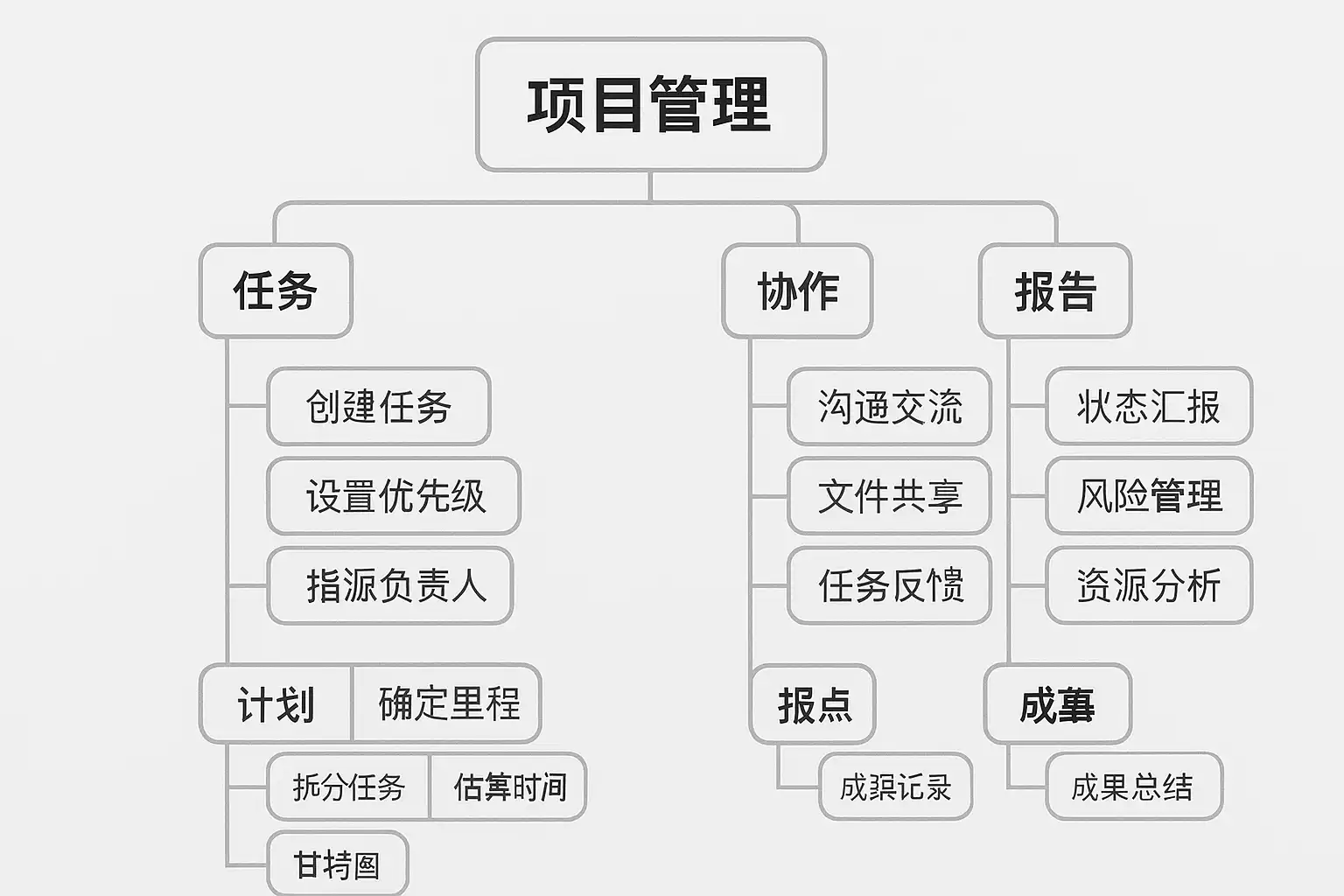 | 甘特图 | 项目进度把控 | 可视化展示任务时间线、依赖关系 |