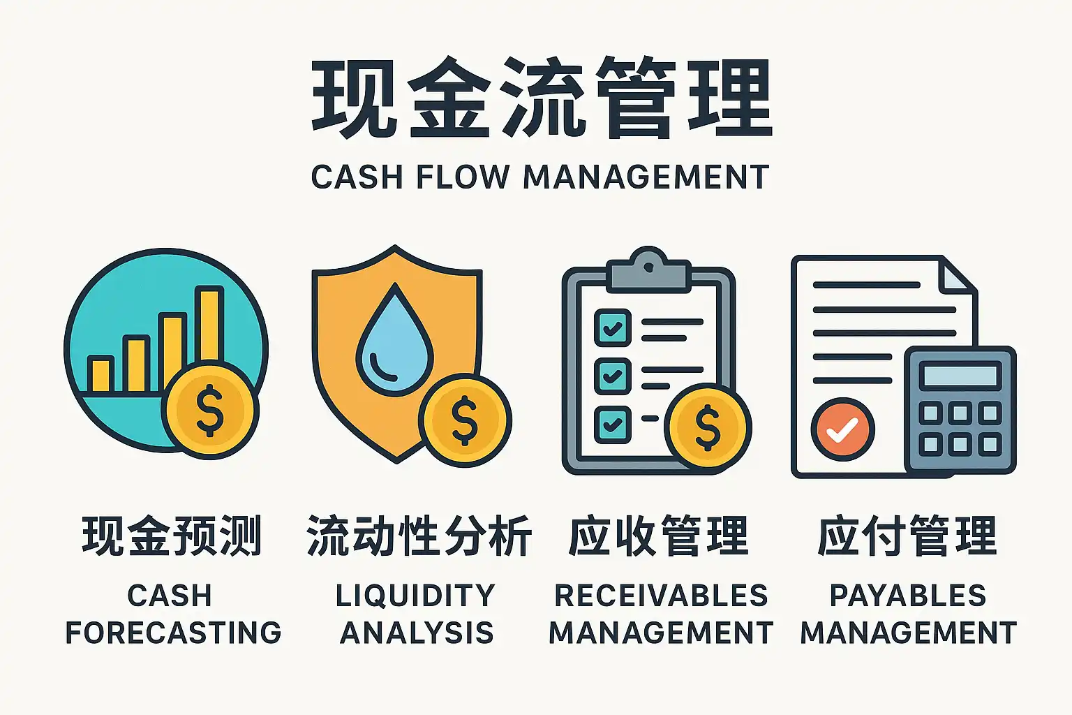 - 保证资金流动性:确保企业有足够现金应对日常运营和突发事件。