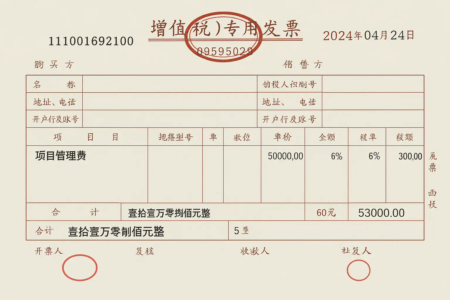 - 发票内容:“XX项目管理服务费,服务周期2024年1-6月,共计金额¥XX,XXX元”